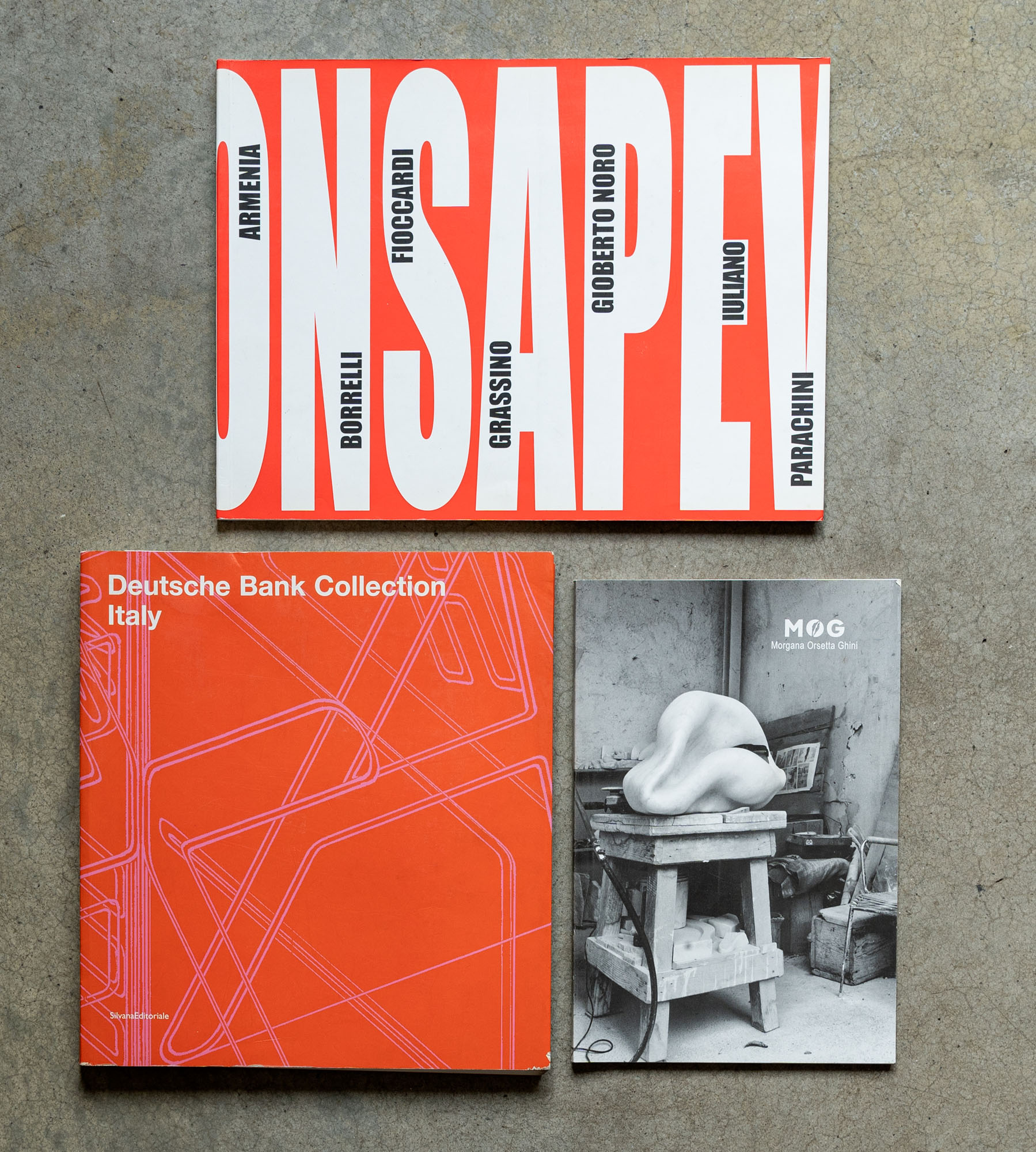 LOTTO MULTIPLOLotto di tre cataloghiSguardo consapevole2007Catalogo illustrato edito in 2000 copie in occasione della mostra tenutasi presso Palafuksas, Torino (6 giugno - 18 giugno 2007)21 x 28 cmEdizione del museoPagine 80DifettiMorgana Orsetta Ghini - MOG2010Catalogo illustrato edito in occasione della mostra tenutasi presso la Galleria CorsoMagenta10, Milano (maggio 2010)22,5 x 15 cmEdizione della galleriaSenza numero di pagineDifettiDeutsche Bank Collection - Italy2007Catalogo illustrato24 x 22 cmSilvana EditorialePagine 128Difetti
