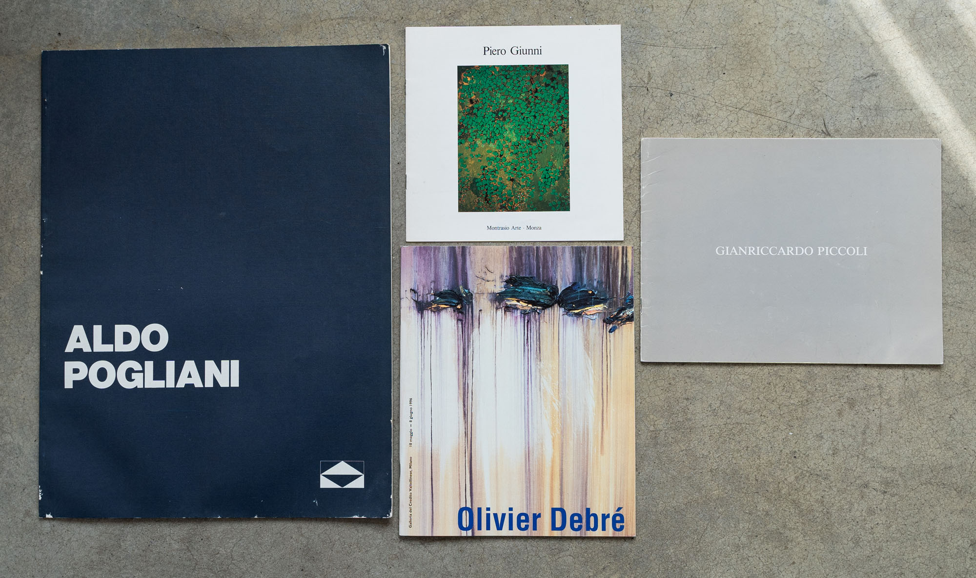 LOTTO MULTIPLOLotto di quattro cataloghiGiunni1994Catalogo illustrato edito in occasione della mostra tenutasi presso il Montrasio Arte, Monza (aprile 1994)20,5 x 20,5 cmEdizioni della galleriaSenza numero di pagineDifettiGianriccardo Piccoli1989Catalogo illustrato edito in occasione della mostra tenutasi presso l'Italiana Arte, Busto Arsizio (19 - 28 maggio 1989)21 x 27,5 cmEdizione della galleriaSenza numero di pagineDifettiOlivier Debré - Retrospettiva1996Catalogo illustrato edito in occasione della mostra tenutasi presso la Galleria del Credito Valtellinese, Milano (10 maggio - 8 giugno 1996)27 x 22 cmEdizione della galleriaPagine 25DifettiAldo PoglianiCatalogo illustrato44 x 33 cmAemmepi EditriceSenza numero di pagineDifetti