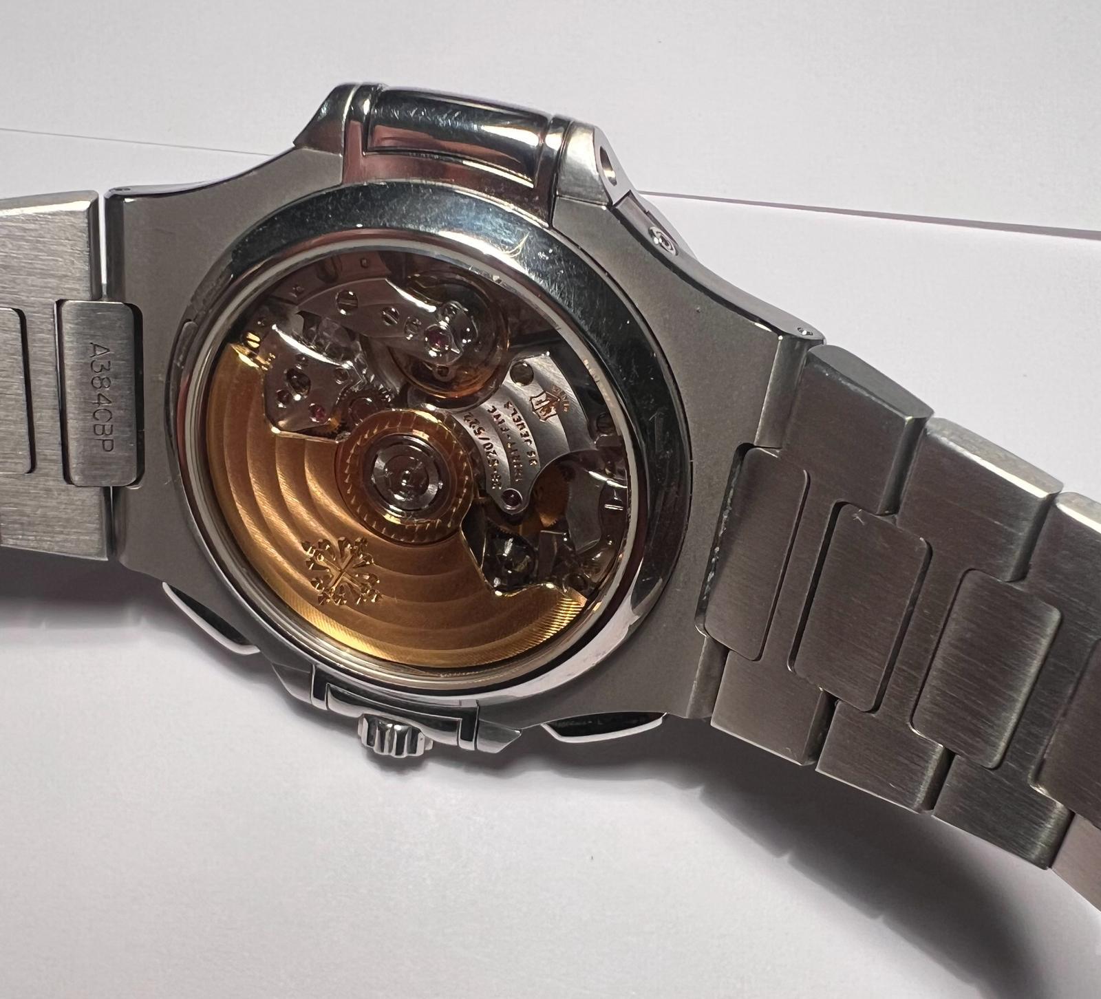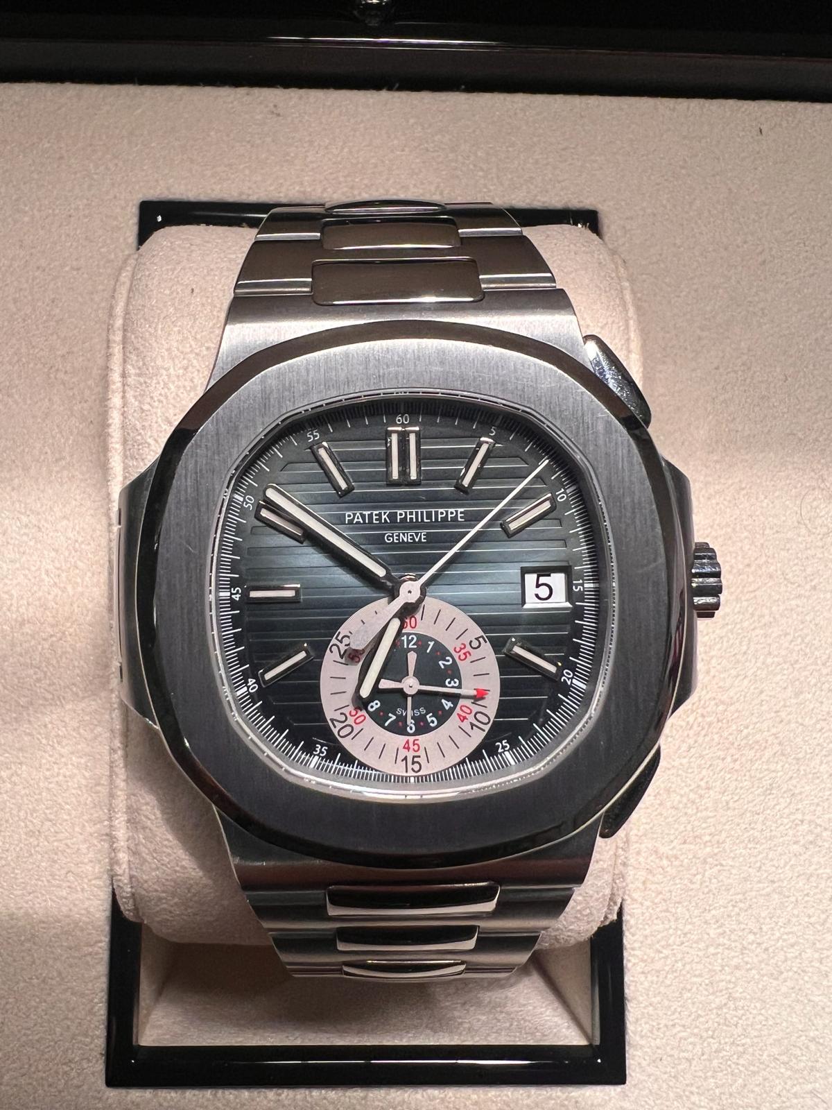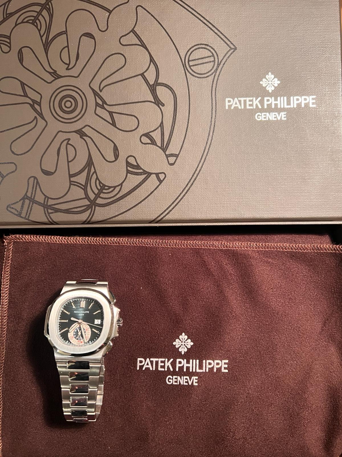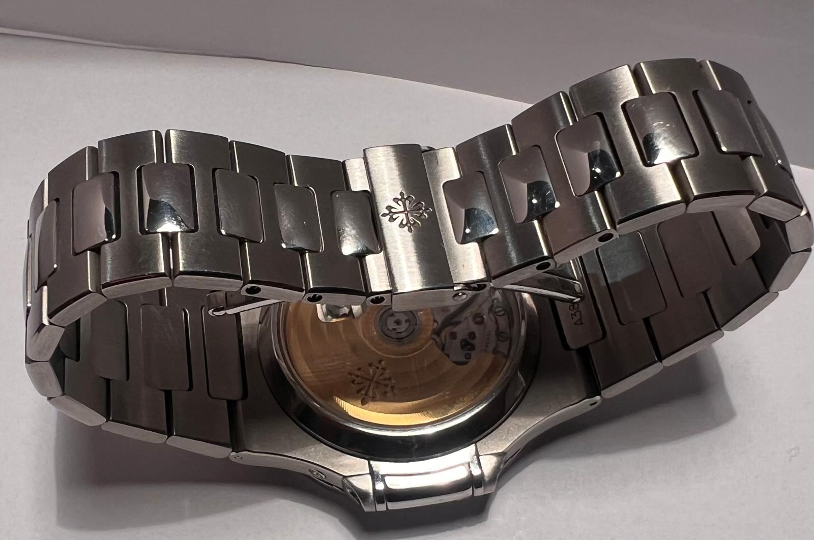 Marca Patek Philippe Modello (Orologio) Nautilus Numero di referenza 5980/1A-001 Carica Automatico Materiale della cassa Acciaio Materiale cinturino Acciaio Anno di produzione 2010 Condizione Ottimo (di seconda mano, segni di usura assenti o appena visibili) Corredo Con scatola originale e documenti originali Calibro Carica Automatico Cassa Materiale della cassa Acciaio Diametro 40.5 x 44 mm Impermeabile 10 ATM Materiale lunetta Acciaio Vetro Vetro zaffiro Numeri sul quadrante Senza numeri Cinturino Materiale cinturino Acciaio Colore cinturino Acciaio Chiusura Doppia chiusura déployante Materiale chiusura Acciaio Funzioni Cronografo, Data