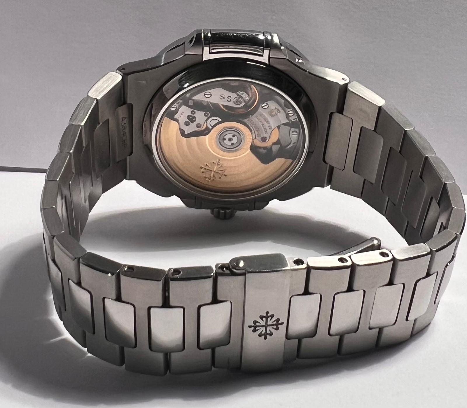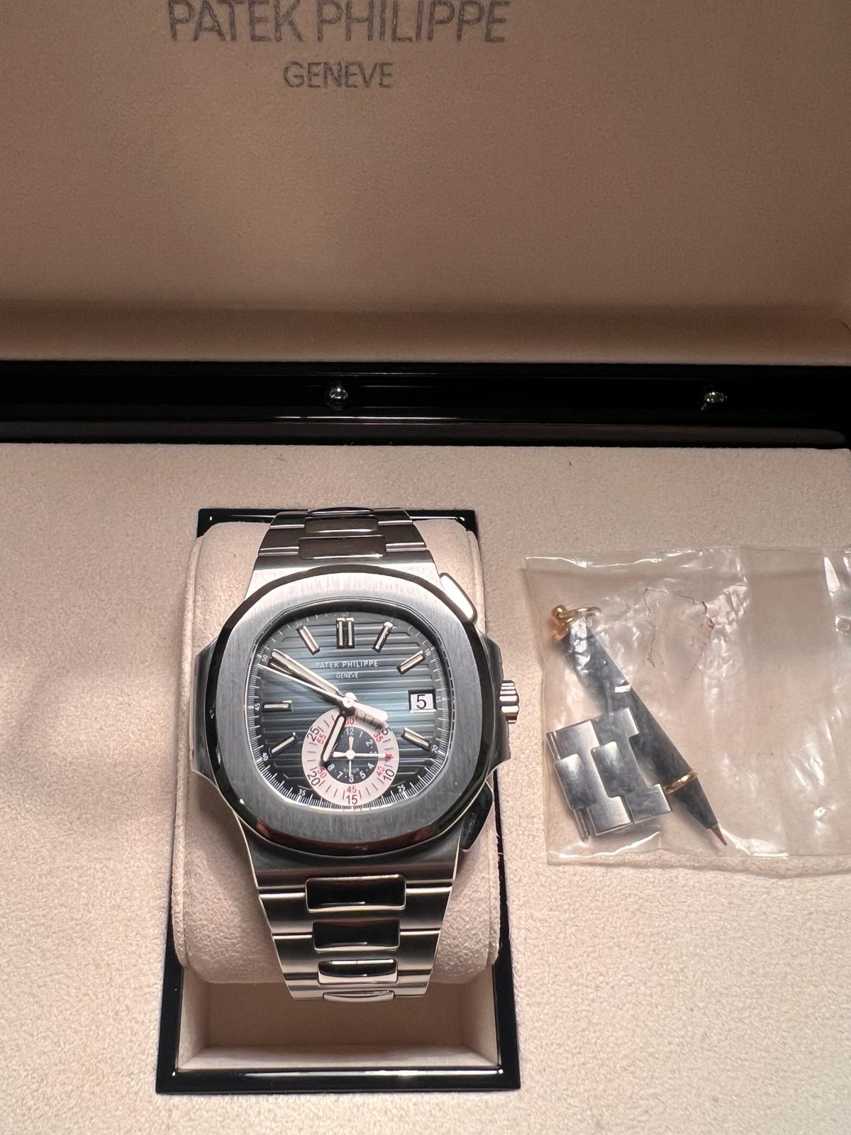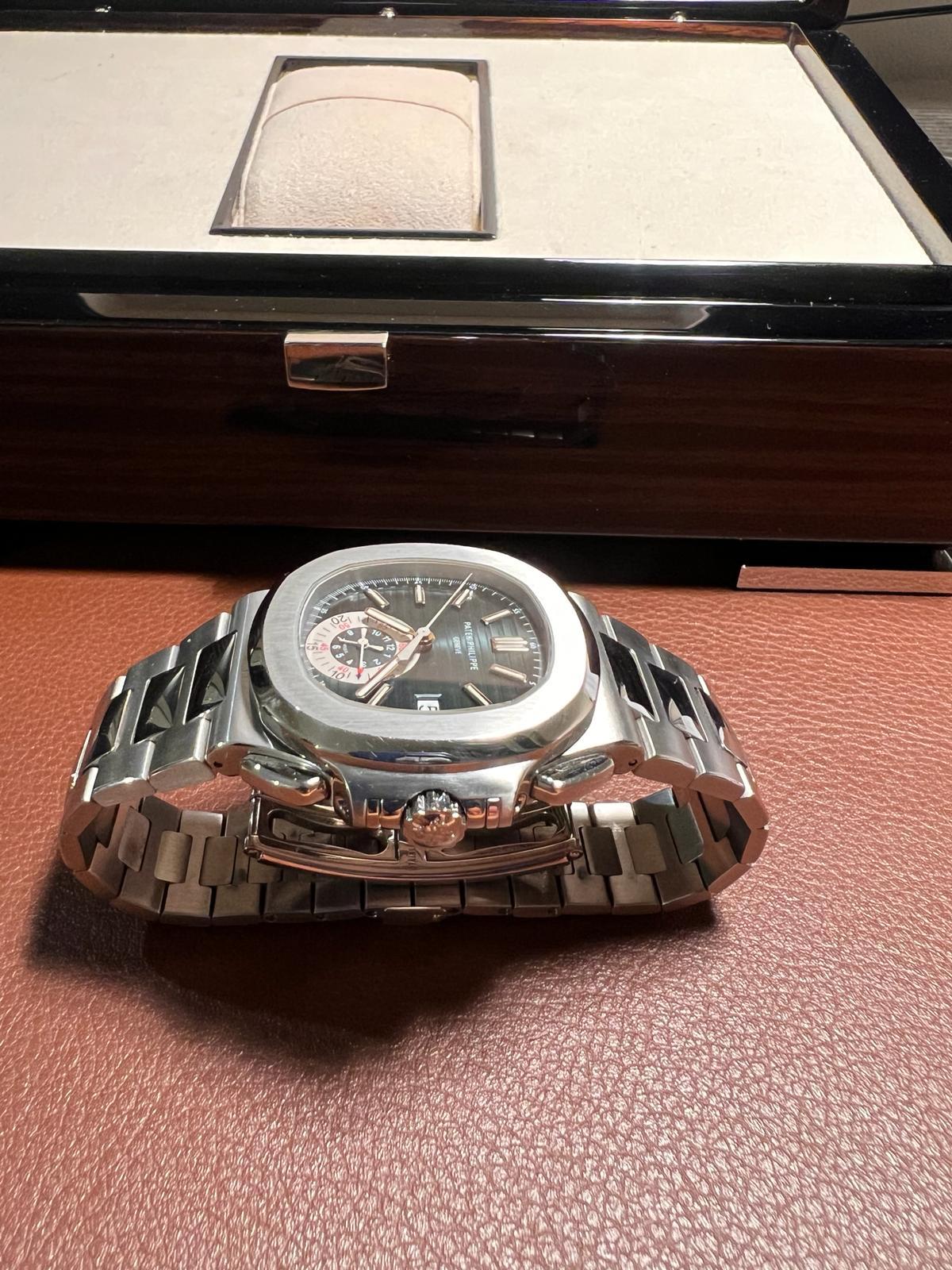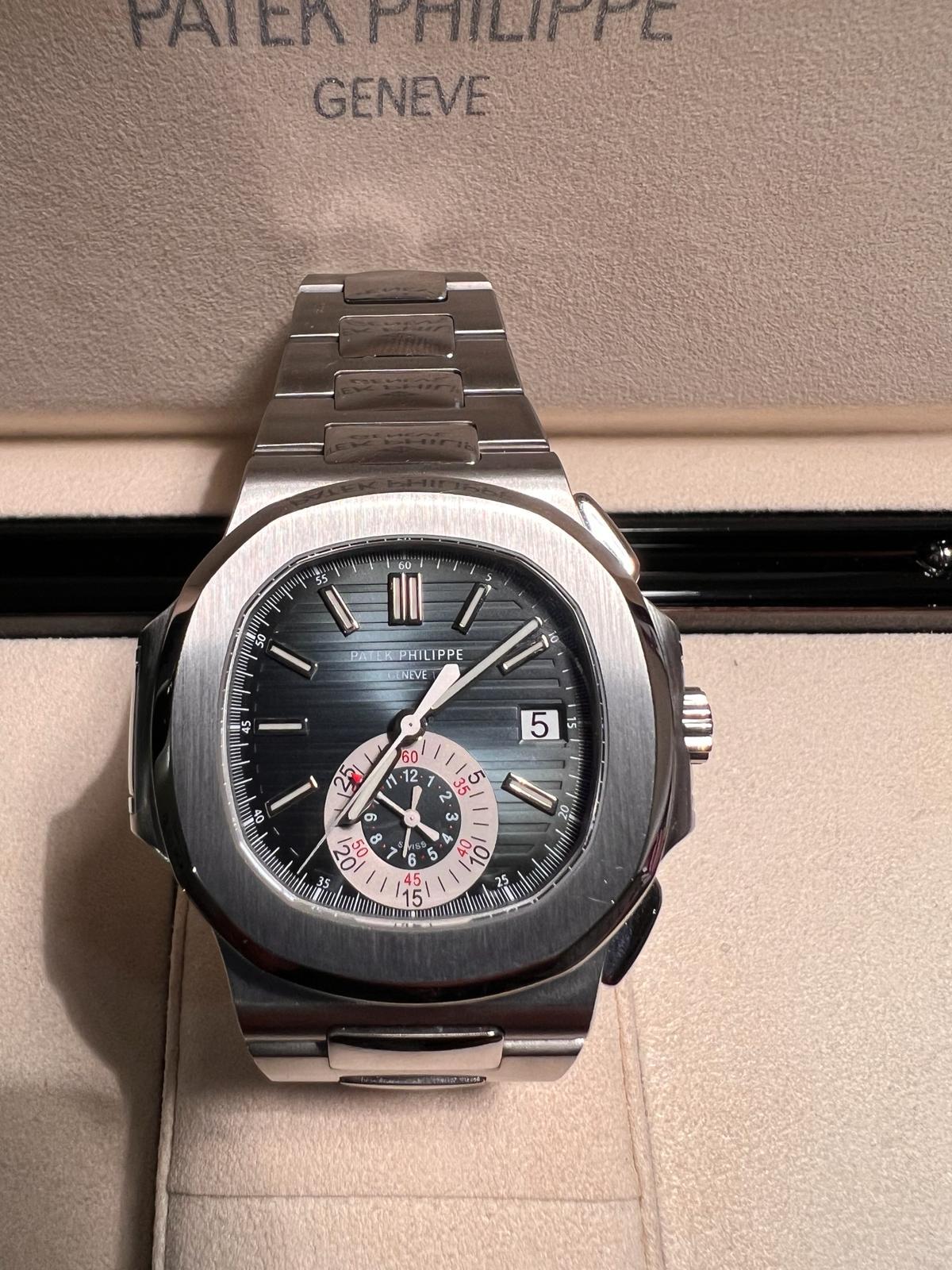 Marca Patek Philippe Modello (Orologio) Nautilus Numero di referenza 5980/1A-001 Carica Automatico Materiale della cassa Acciaio Materiale cinturino Acciaio Anno di produzione 2010 Condizione Ottimo (di seconda mano, segni di usura assenti o appena visibili) Corredo Con scatola originale e documenti originali Calibro Carica Automatico Cassa Materiale della cassa Acciaio Diametro 40.5 x 44 mm Impermeabile 10 ATM Materiale lunetta Acciaio Vetro Vetro zaffiro Numeri sul quadrante Senza numeri Cinturino Materiale cinturino Acciaio Colore cinturino Acciaio Chiusura Doppia chiusura déployante Materiale chiusura Acciaio Funzioni Cronografo, Data