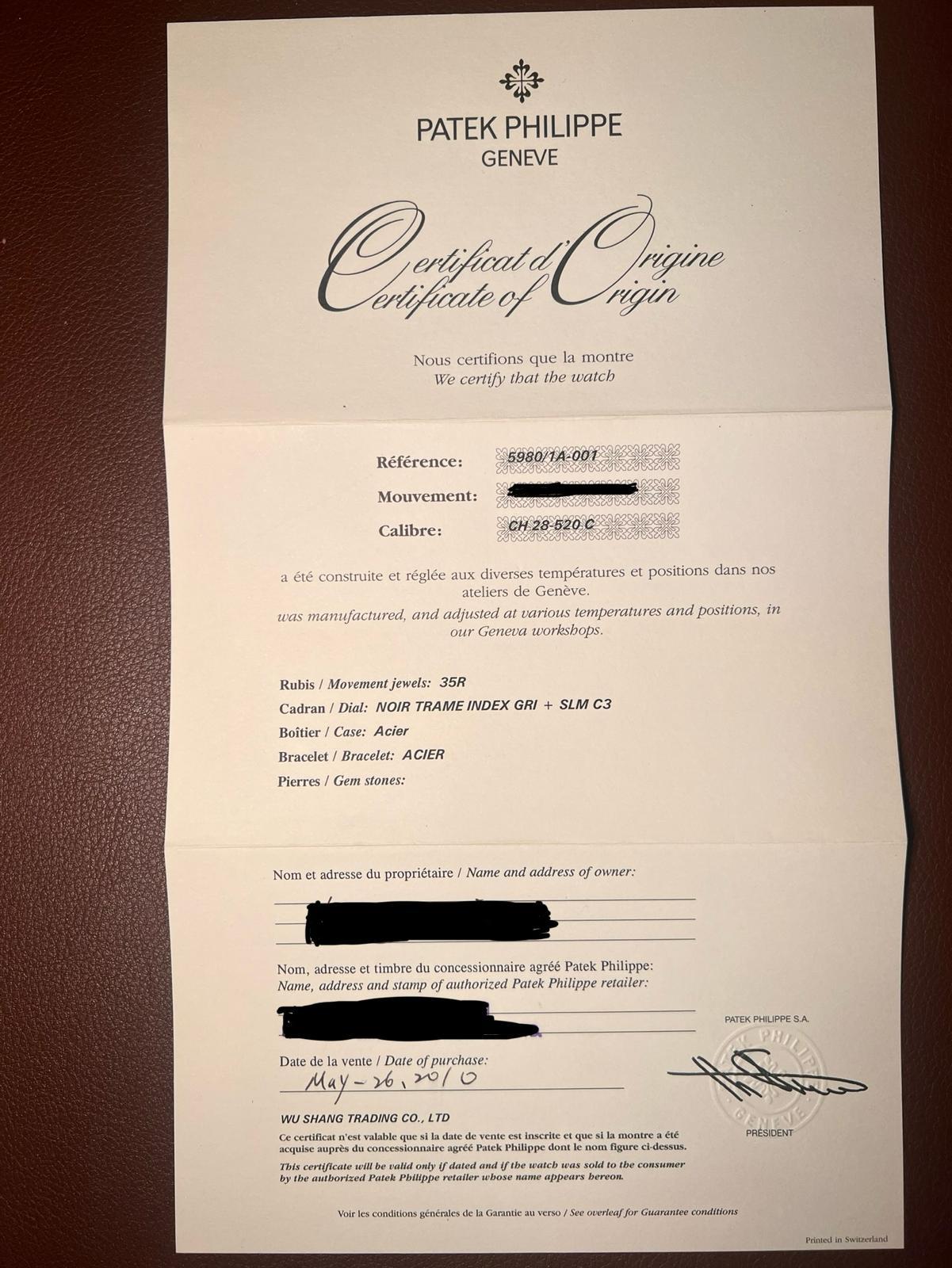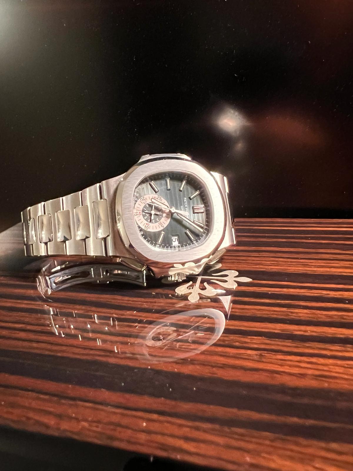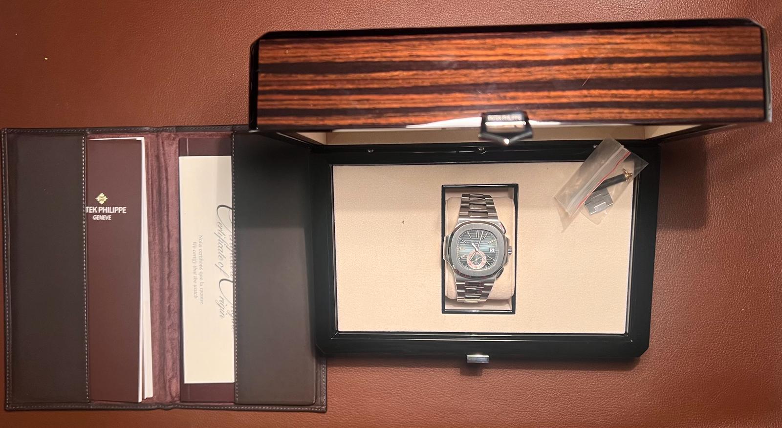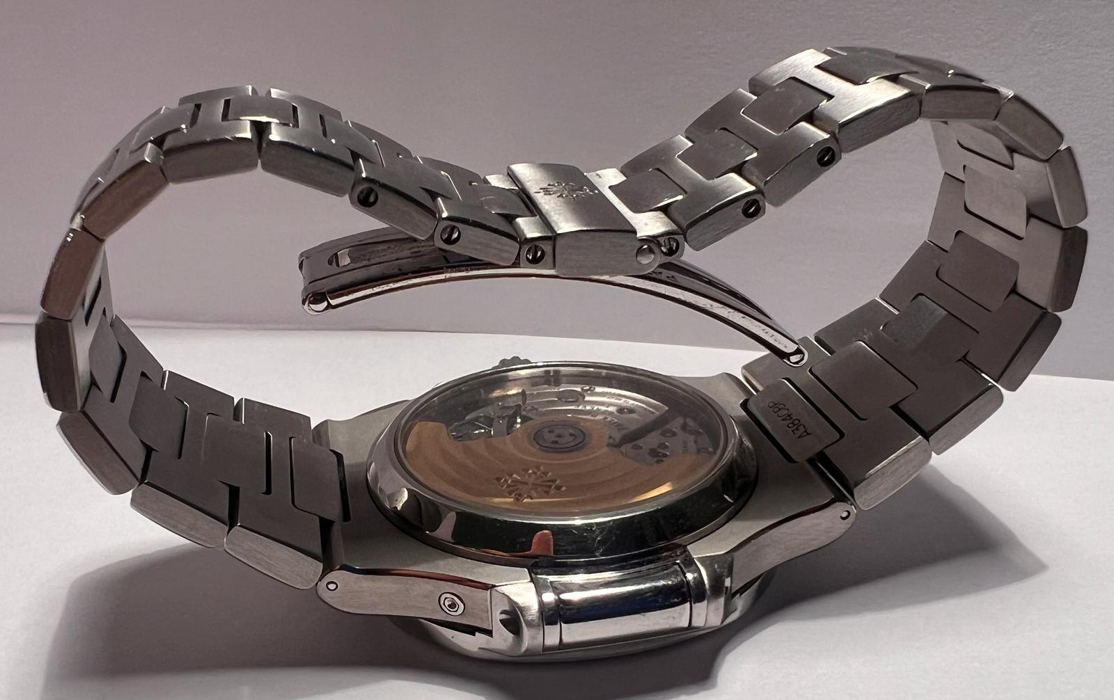Marca Patek Philippe Modello (Orologio) Nautilus Numero di referenza 5980/1A-001 Carica Automatico Materiale della cassa Acciaio Materiale cinturino Acciaio Anno di produzione 2010 Condizione Ottimo (di seconda mano, segni di usura assenti o appena visibili) Corredo Con scatola originale e documenti originali Calibro Carica Automatico Cassa Materiale della cassa Acciaio Diametro 40.5 x 44 mm Impermeabile 10 ATM Materiale lunetta Acciaio Vetro Vetro zaffiro Numeri sul quadrante Senza numeri Cinturino Materiale cinturino Acciaio Colore cinturino Acciaio Chiusura Doppia chiusura déployante Materiale chiusura Acciaio Funzioni Cronografo, Data