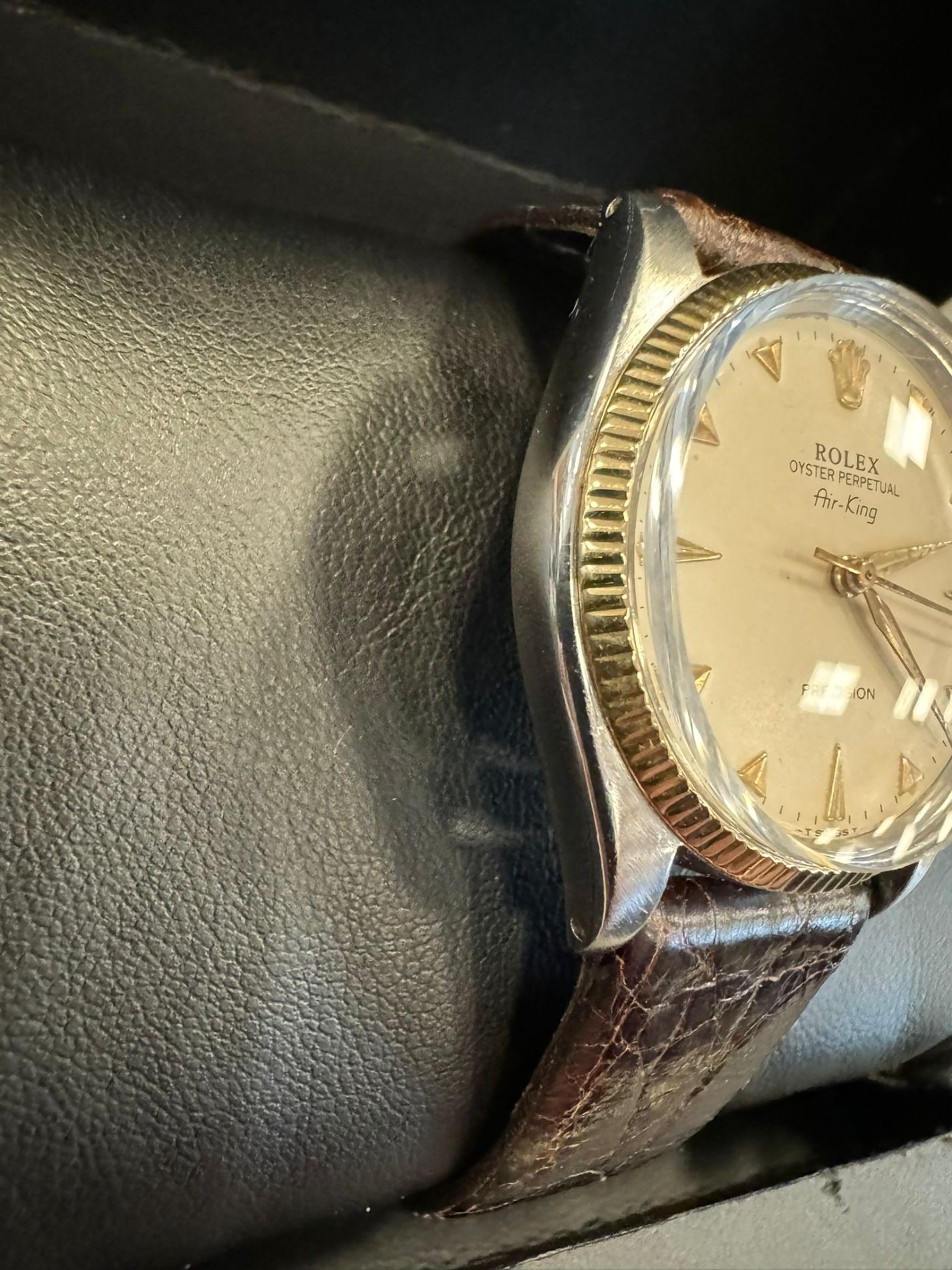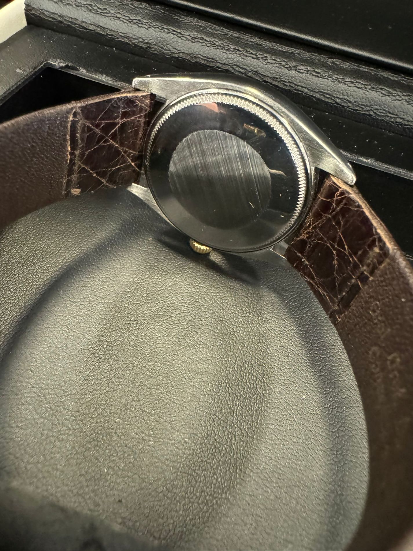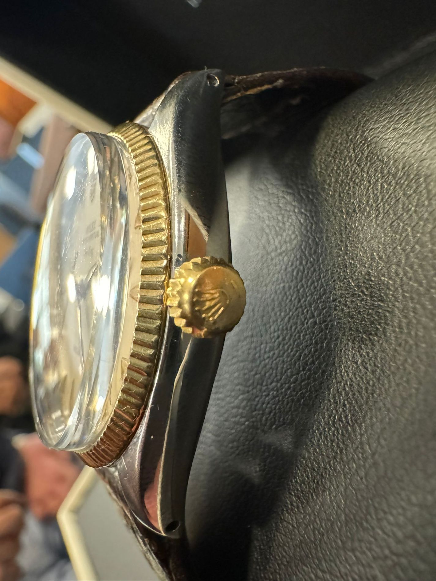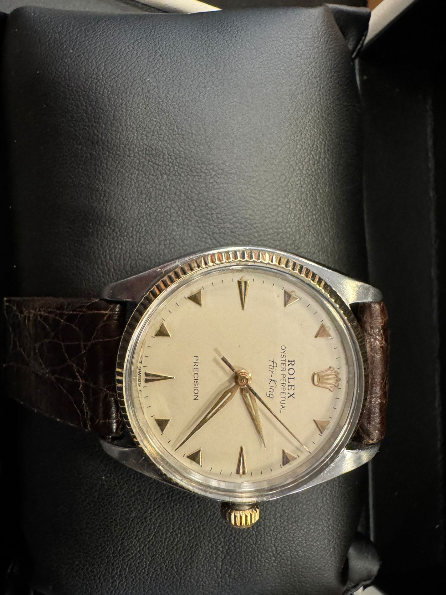 Marca Rolex Modello (Orologio) Air King Numero di referenza 5501 Carica Automatico Materiale della cassa Oro/Acciaio Materiale cinturino Pelle non Rolex Anno di produzione 1984 (Anno approssimativo) Condizione Buono (segni di usura o graffi poco visibili o visibili) Corredo no docuemnti, no box Automatico Cassa Materiale della cassa Oro/Acciaio Diametro 34 mm Materiale lunetta Oro giallo Vetro Plexiglas Senza numeri Cinturino Materiale cinturino Pelle Colore cinturino Marrone Chiusura Chiusura ad ardiglione
