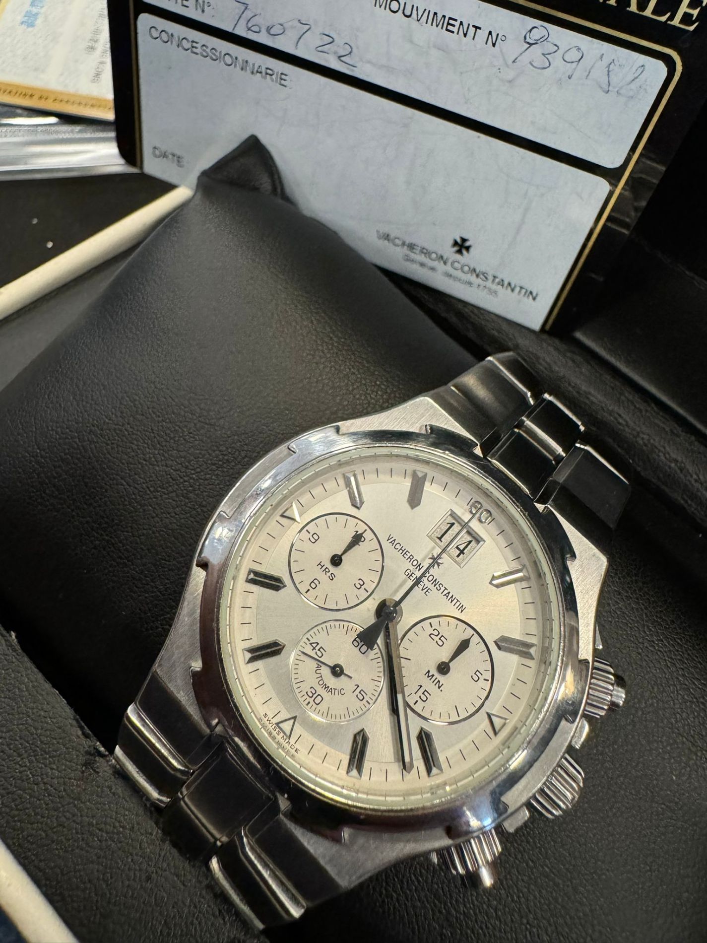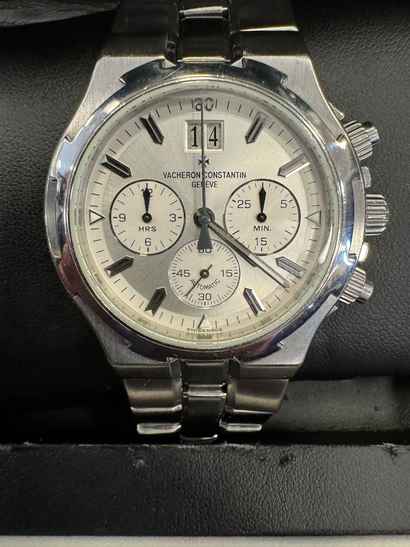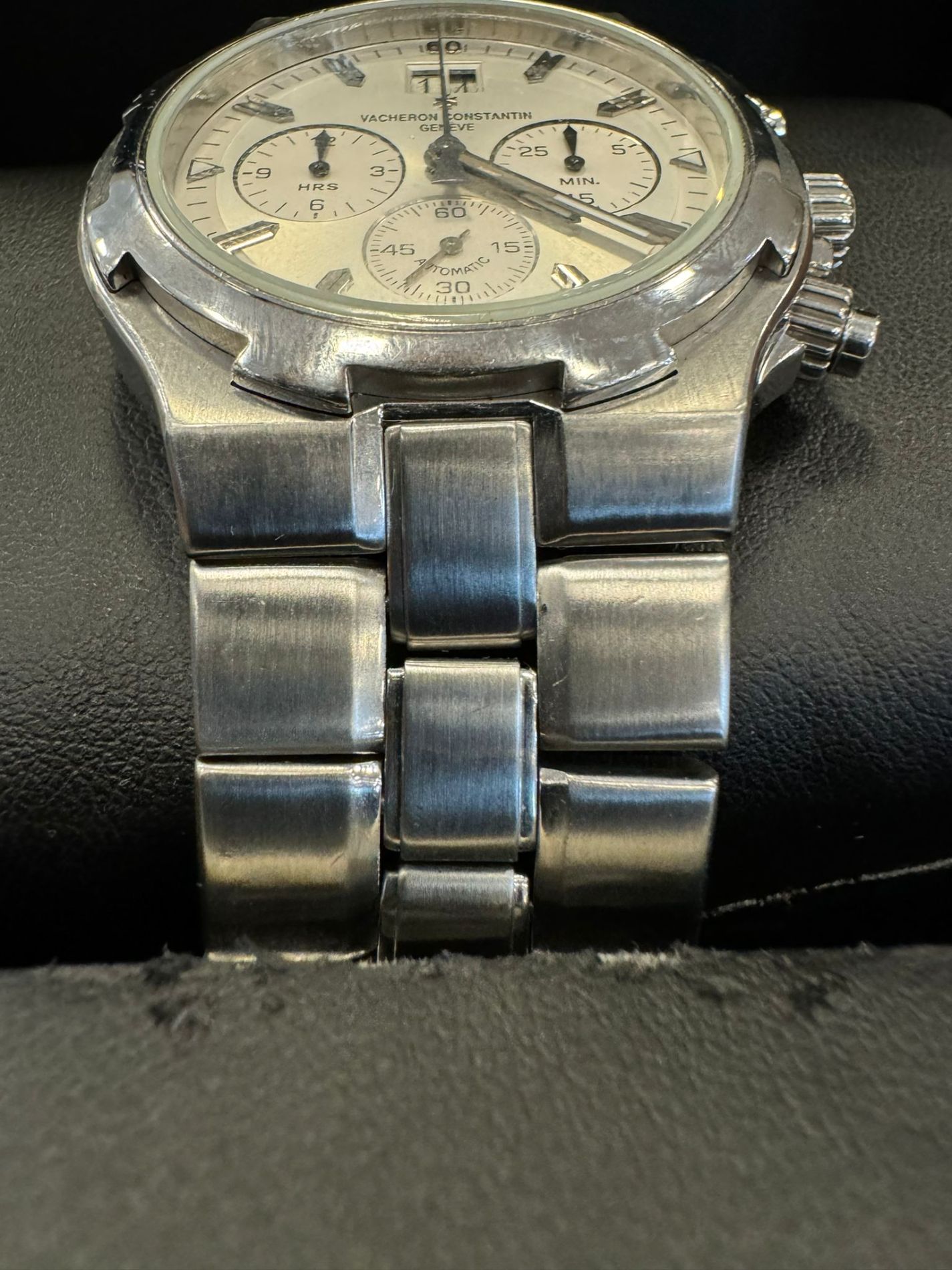 Marca Vacheron Constantin Modello (Orologio) Overseas Chronograp Carica Automatico Materiale della cassa Acciaio Materiale cinturino Acciaio Condizione Ottimo (di seconda mano, segni di usura assenti o appena visibili) Corredo No scatola, documenti originali presenti Cassa Materiale della cassa Acciaio Diametro 40 mm Impermeabile 15 ATM Materiale lunetta Acciaio Vetro Vetro zaffiro Cinturino Materiale cinturino Acciaio Colore cinturino Acciaio Chiusura Doppia chiusura déployante Materiale chiusura Acciaio