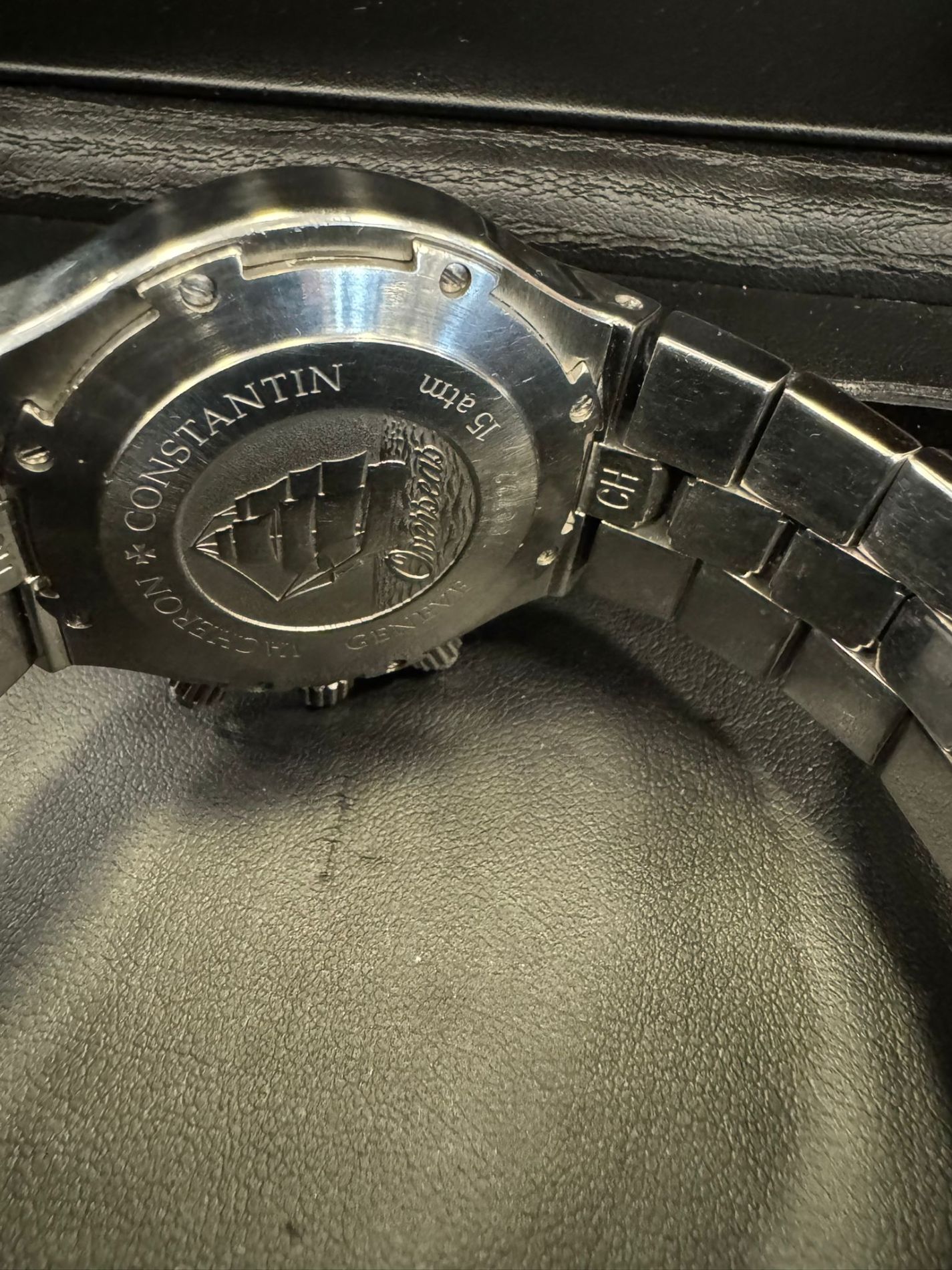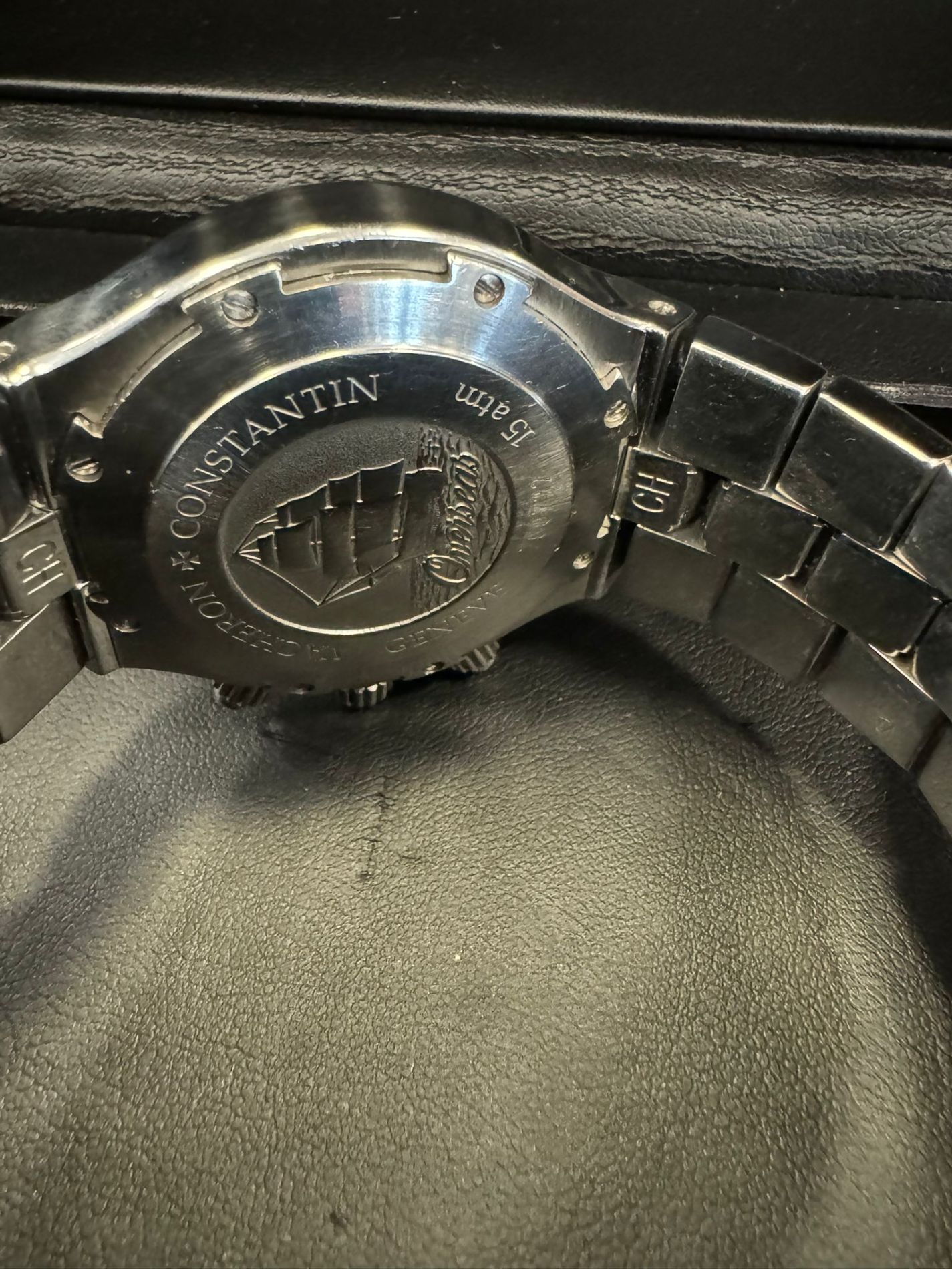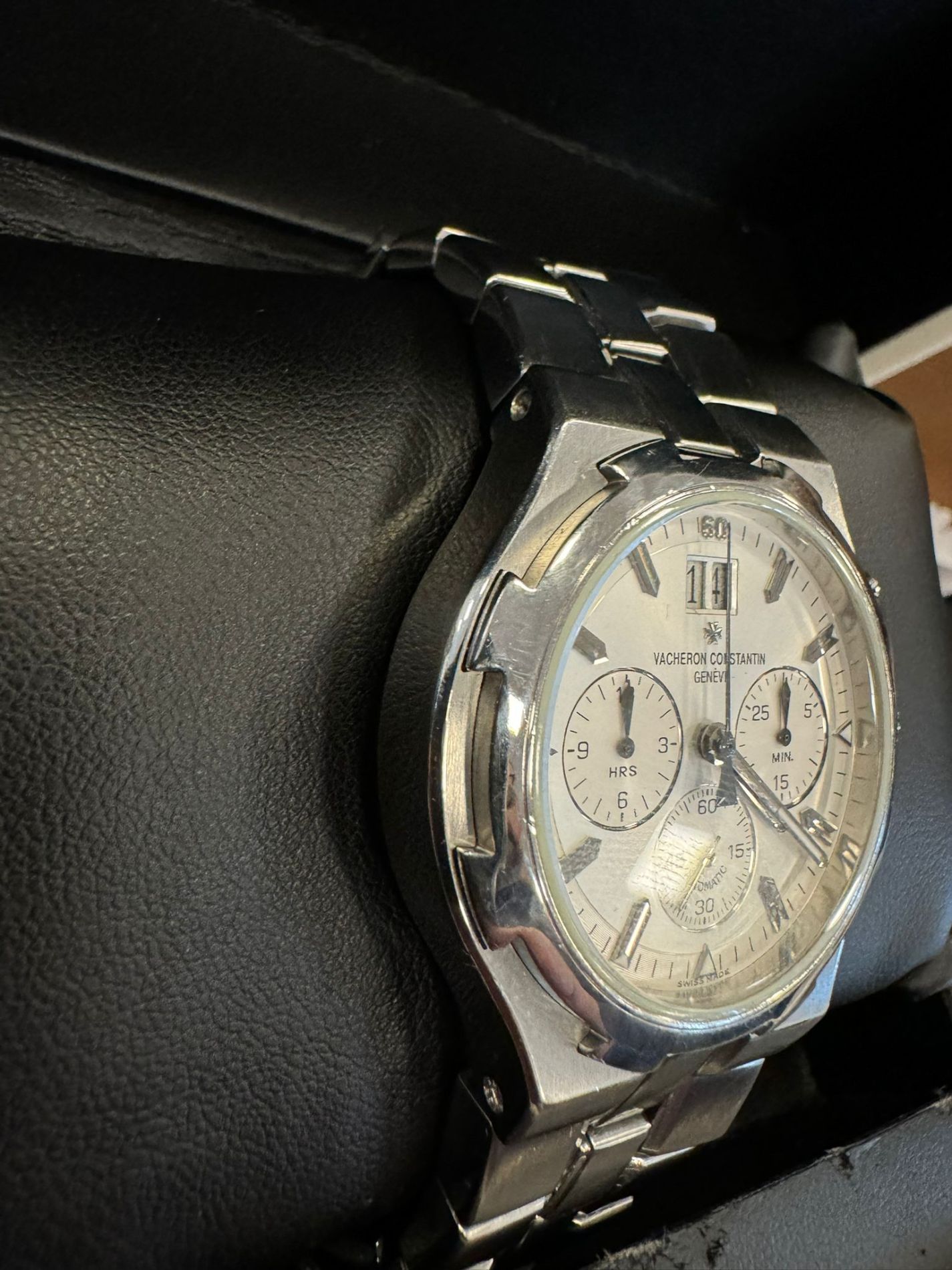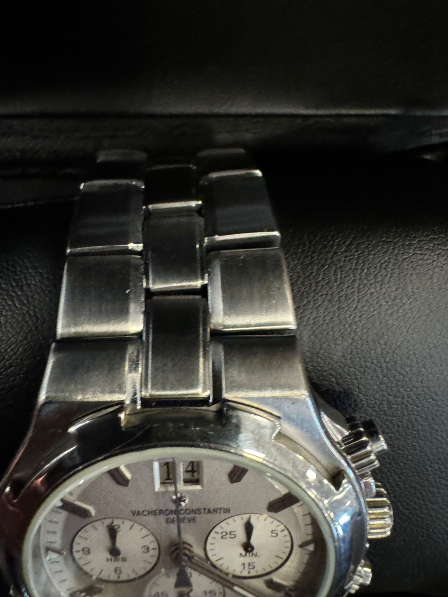 Marca Vacheron Constantin Modello (Orologio) Overseas Chronograp Carica Automatico Materiale della cassa Acciaio Materiale cinturino Acciaio Condizione Ottimo (di seconda mano, segni di usura assenti o appena visibili) Corredo No scatola, documenti originali presenti Cassa Materiale della cassa Acciaio Diametro 40 mm Impermeabile 15 ATM Materiale lunetta Acciaio Vetro Vetro zaffiro Cinturino Materiale cinturino Acciaio Colore cinturino Acciaio Chiusura Doppia chiusura déployante Materiale chiusura Acciaio