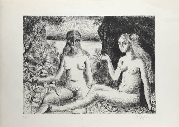 PAUL DELVEAUX<BR>Wanze (Belgio) 1897-1994 Veurne (Belgio)<BR>"La Dispute"