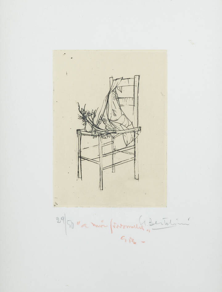 GIUSEPPE BARTOLINI<BR>Viareggio (LU) 1938<BR>"Natura morta su sedia"