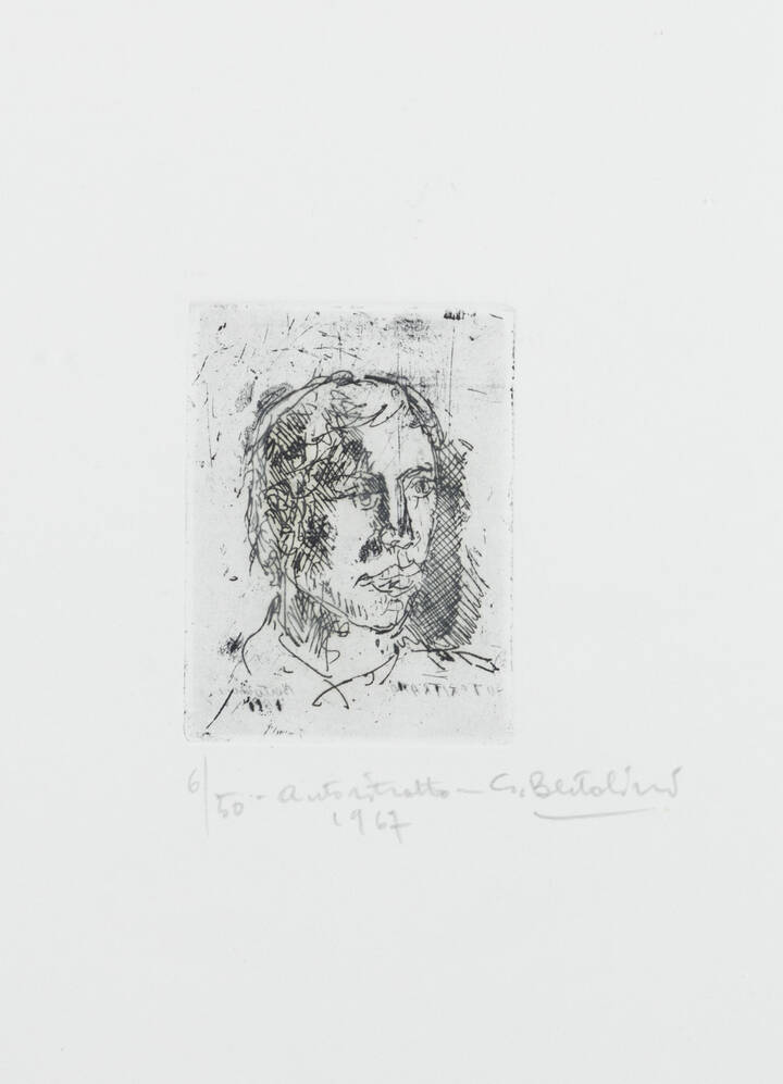 Opera firmata in basso a destra, numerata in basso a sinistra e dedicata ad personam in basso al centro (a matita sul foglio); firmata e datata in lastra