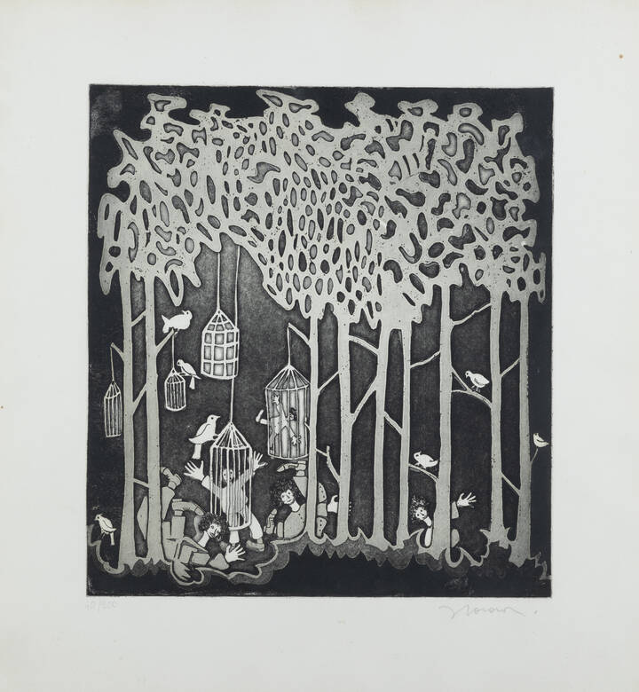 FRANCESCO CASORATI<BR>Torino 1934 - 2013<BR>"Le gabbie nel bosco"1967