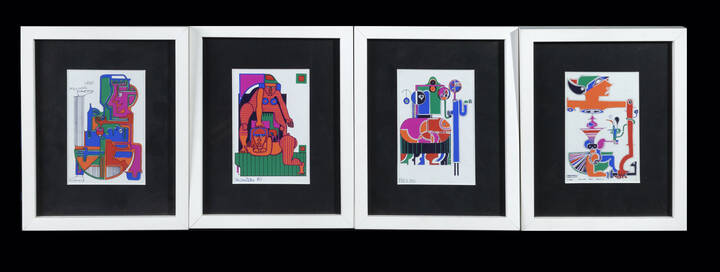 Lot 244 | MOLINARI-FREA-MANTELLO<BR>"Ermafrodito complicato" - lotto di quattro quadretti 1980
