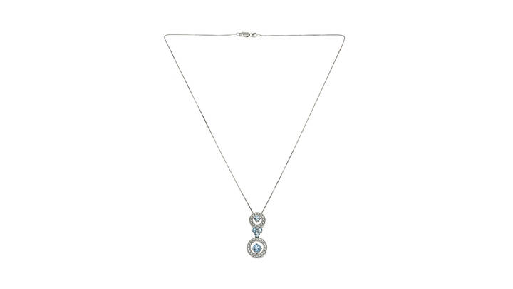 in oro bianco con due elementi a forma di cerchio in diamanti taglio brillante per totali ct 0,41ca, probabile colore G-H, purezza IF-VVS e acquamarine taglio rotondo
