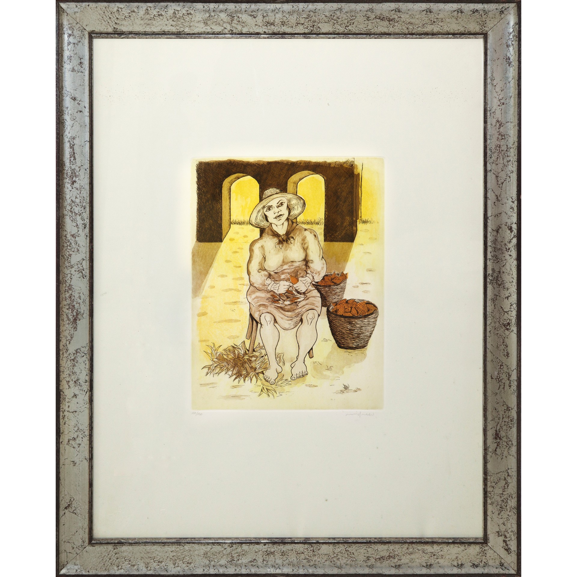 Giuseppe Migneco (Messina 1903-Milano 1997) - Donna che pulisce le pannocchie H cm 78x59 - in cornice H cm 89x70 litografia Firmata e tirata 114/120 al fronte .