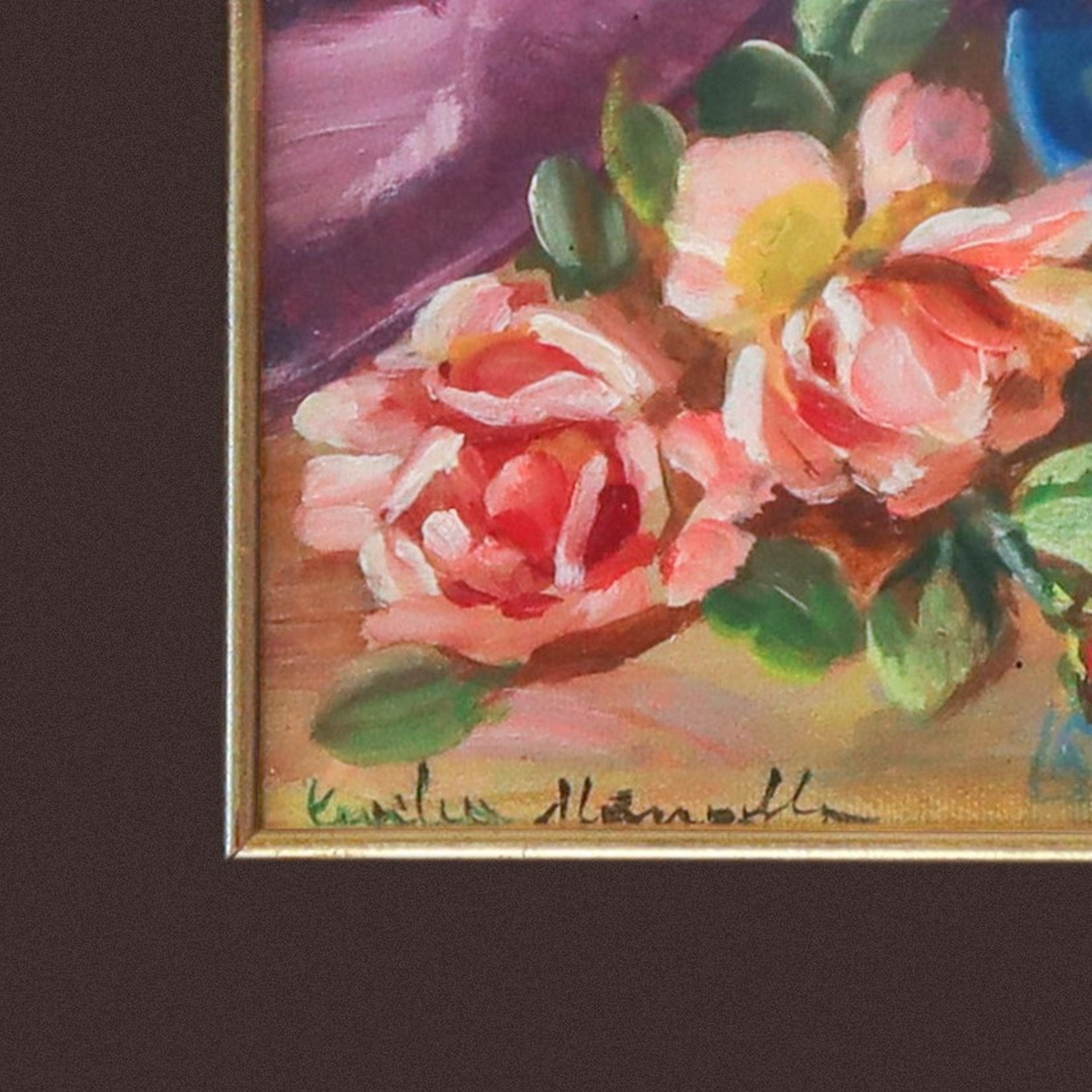 Vasi e fiori H cm 21x 16,5, in cornice cm 48x43 Olio su masonite Firmato in basso a destra Cecilia Manzella