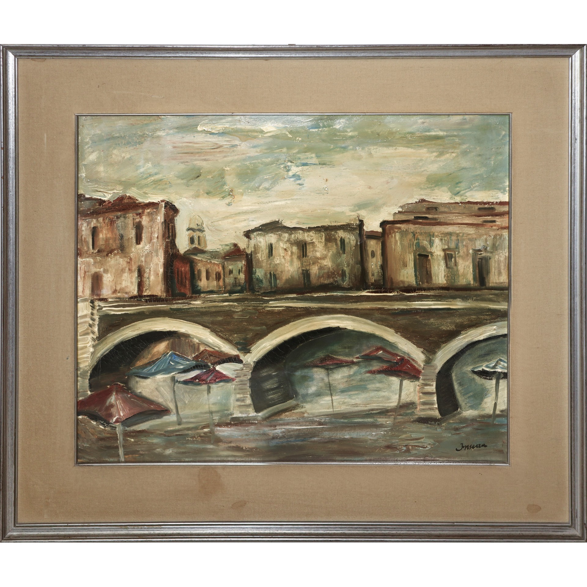 Lorenzo Inserra - Archi della Marina di Catania, 1974 H cm 50x60 - in cornice H cm 68x78 Olio su tela Firmata in basso a destra. Al retro firmato e datato