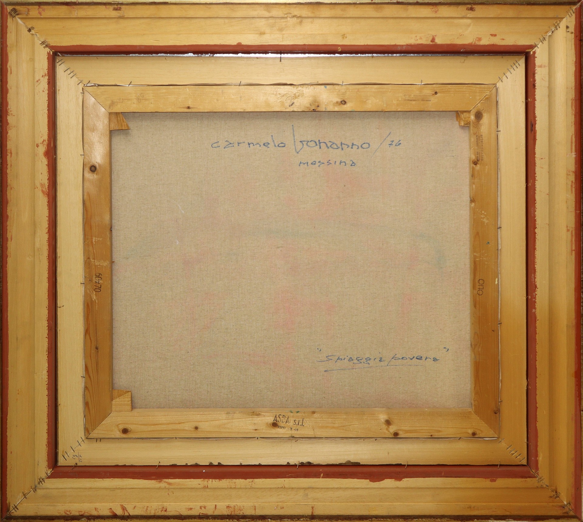 Carmelo Bonanno (Messina 1905-1994) - Spiaggia povera, Messina, 1976 H cm 60x70 - in cornice H cm 89x98 olio su tela Firmato in basso a destra. Al retro firmato, datato e titolato