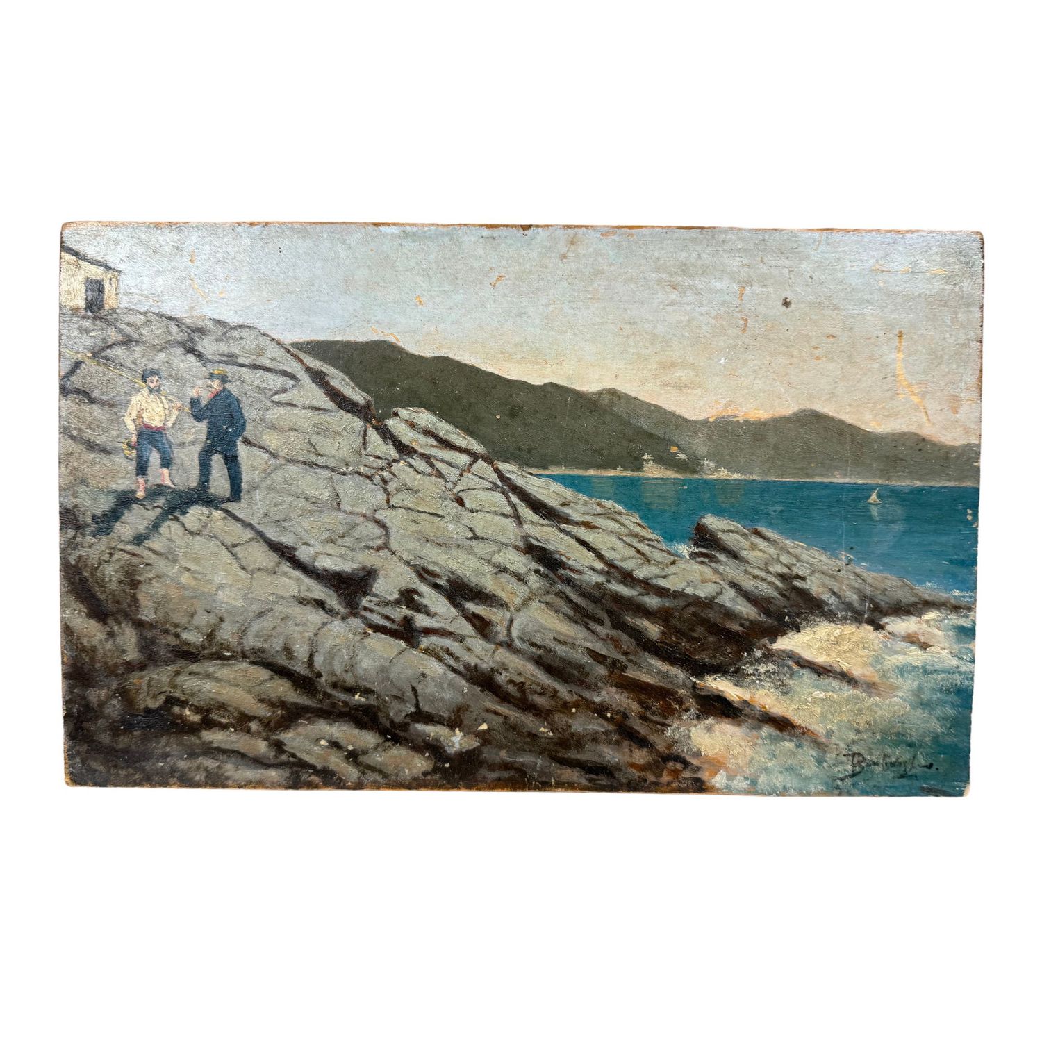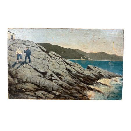 Dipinto olio su tavola, periodo XX secolo scuola Italiana, raffigurante Scorcio di marina.