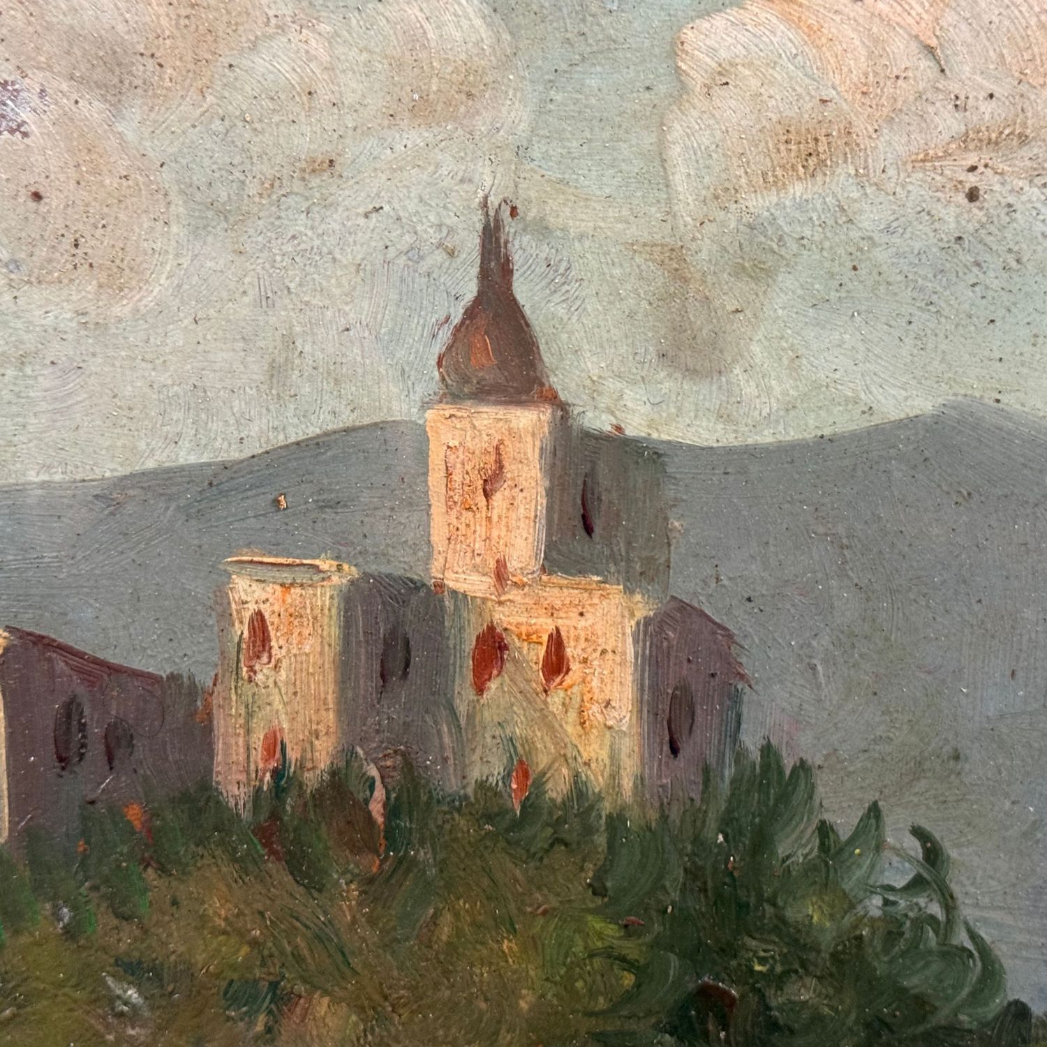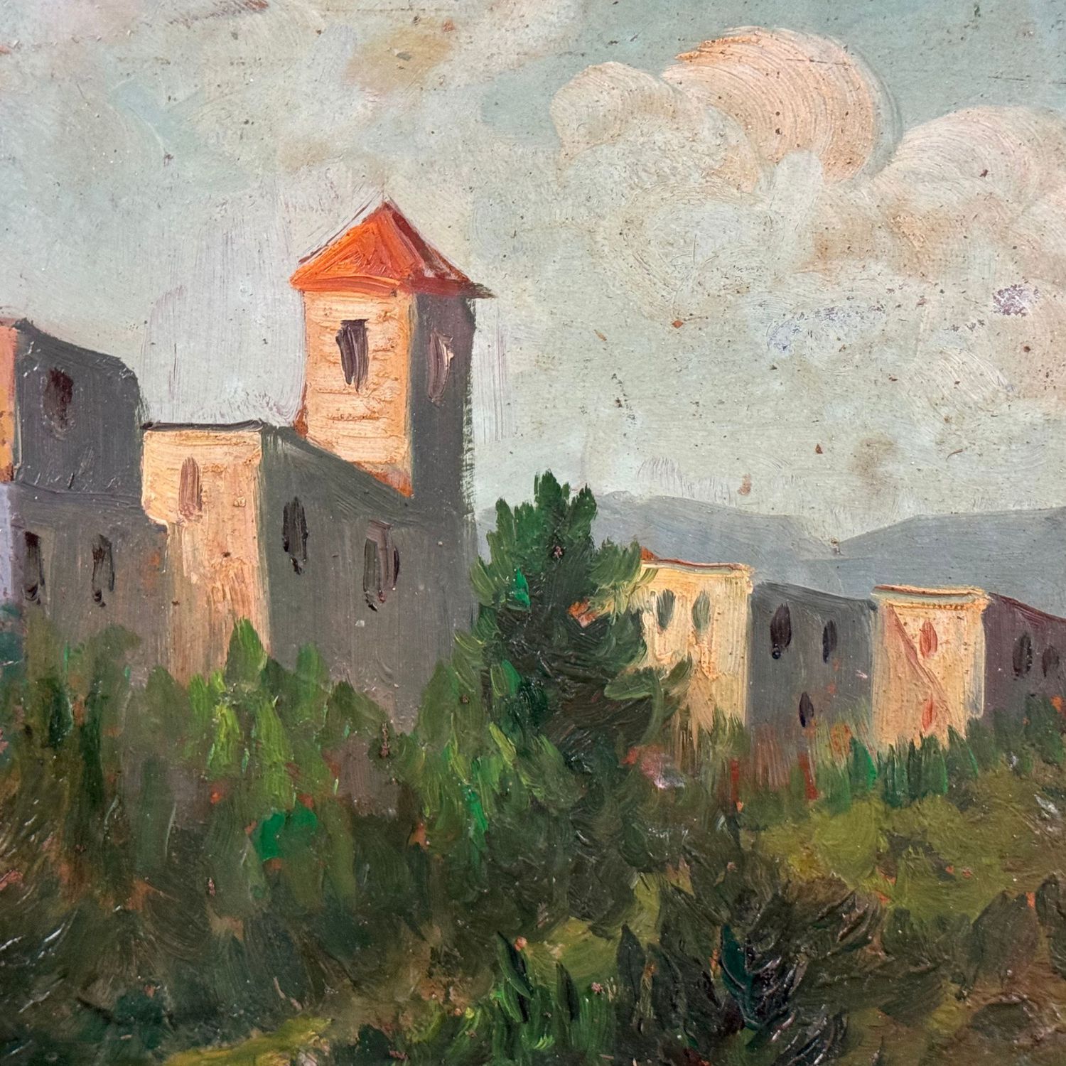 Dipinto olio su pannello, periodo XX secolo scuola Italiana, raffigurante Paesaggio (luogo imprecisato).