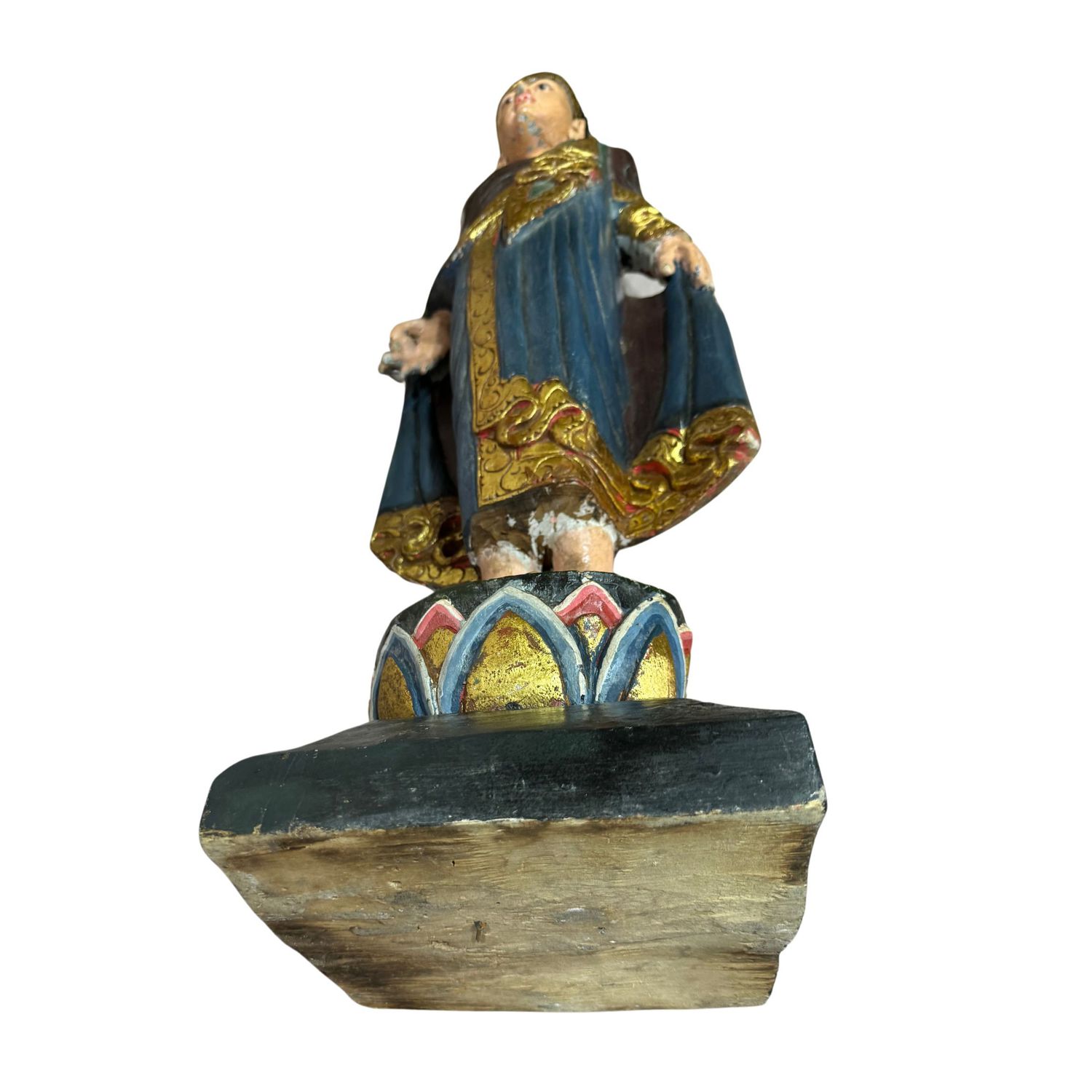 Rifinitura policromata e decorata, lievi e sparsi segni di vissuto.