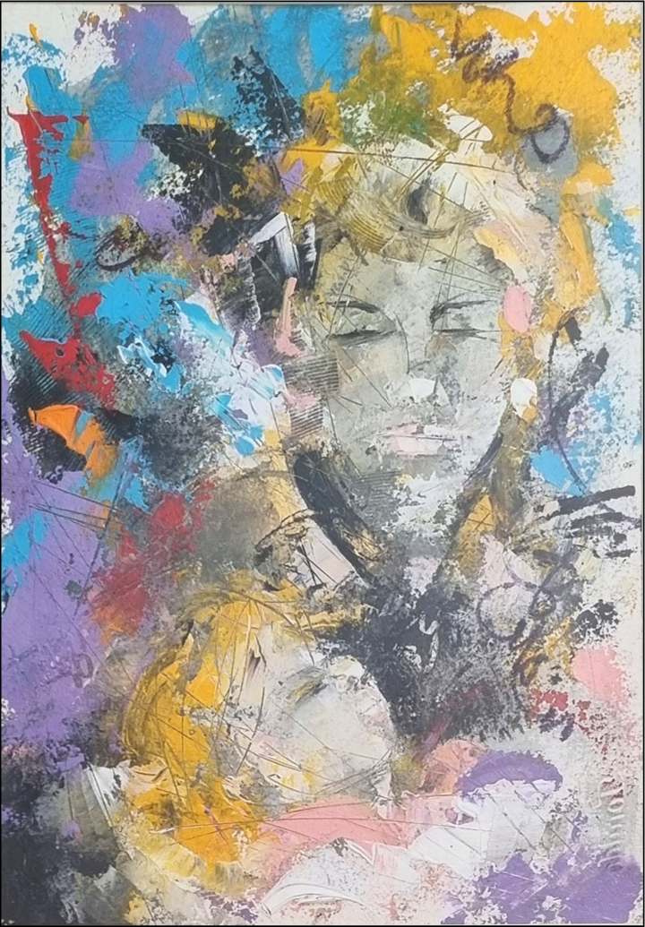 TORALDO FRANCESCO Catanzaro 1960 "Maternità" Acrilico su cartoncino fatto a mano, cm 35x50 del 2014. Firma e numero di archivio al retro. Autentica su foto.