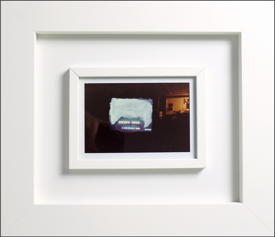 SCHIFANO MARIO Libia 1934 - Roma 1998 "Senza titolo" Tecnica mista su fotografia cm 10x15, del 1990-97. Firmata al retro. Opera registrata presso Fondazione Mario Schifano. Certificato di autenticità su foto della Fondazione Schifano. Opera incorniciata (la cornice presenta segni di usura).