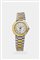 Cassa in acciaio e dorata di forma con fondello a vite. Quadrante bianco con indici geometrici applicati e numeri romani serigrafati. Datario al 6. Bracciale integrato in acciaio e dorato con chiusura clasp.