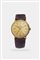Cassa in oro monoblocco. Quadrante champagne con indici geometrici applicati ai quarti e serigrafati nel resto del quadrante.