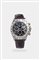 Cassa in oro bianco con lunetta tachimetrica e fondello a vite. Quadrante nero con indici