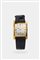 Cassa in oro di forma con fondello a scatto. Quadrante argento con indici geometrici applicati ed indicazione dei secondi continui al 6.