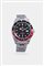 Cassa in acciaio con lunetta girevole bidirezionale “Coke”. Quadrante nero con indici geometrici luminescenti applicati, indicazione dei secondi continui al centro e datario al 3. Presente poi la lancetta del secondo fuso orario.