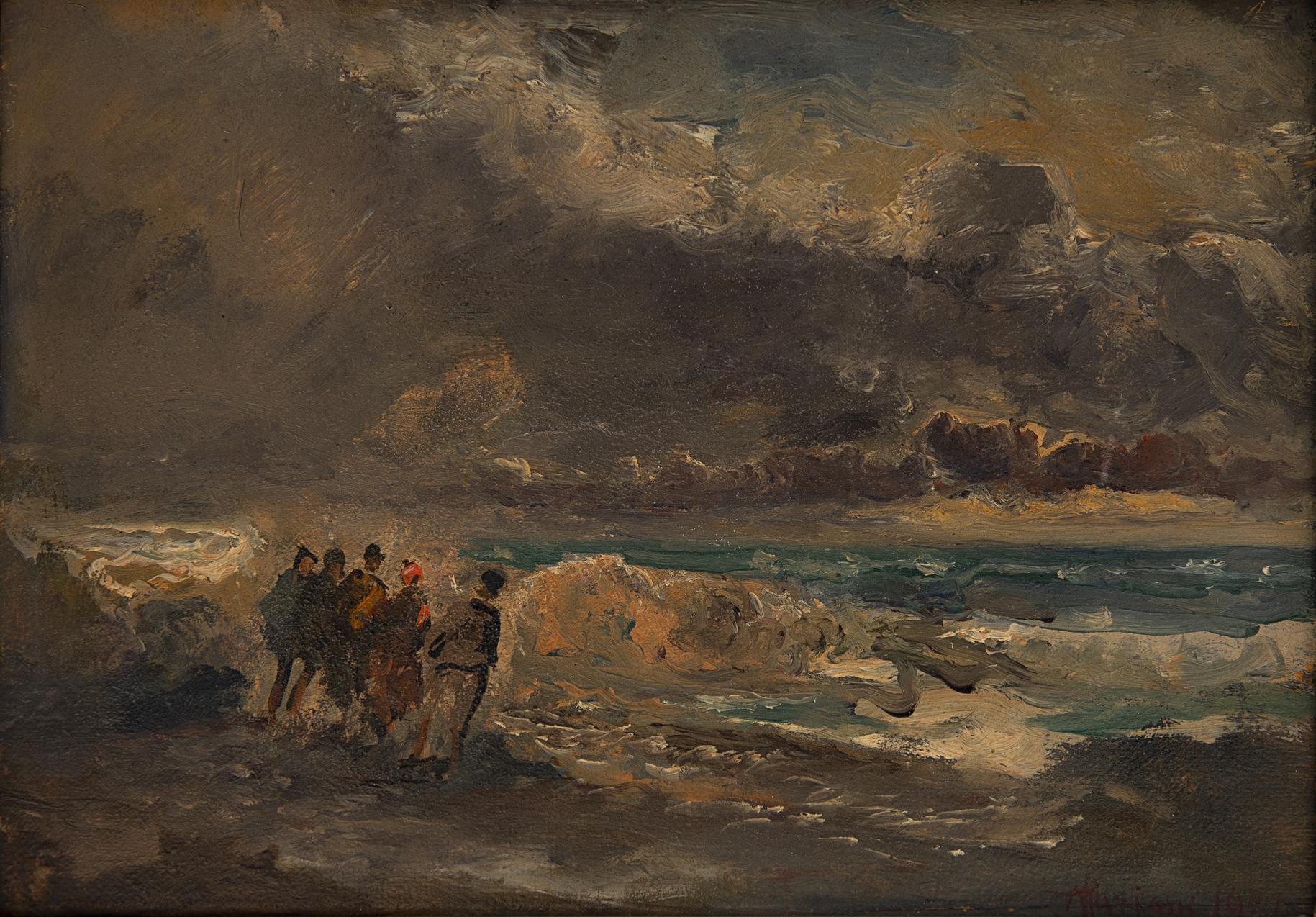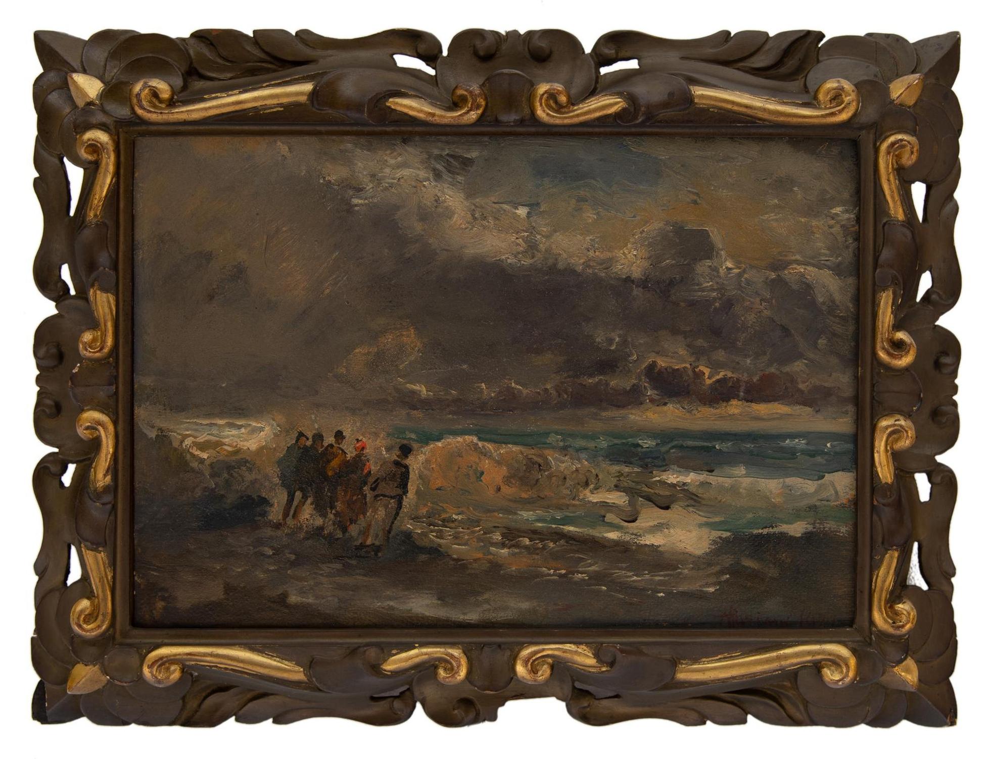 Pompeo Mariani - In riva al mare - Monza 1857 - Bordighera IM 1927 - Olio su tavola cm 23,5x34,5