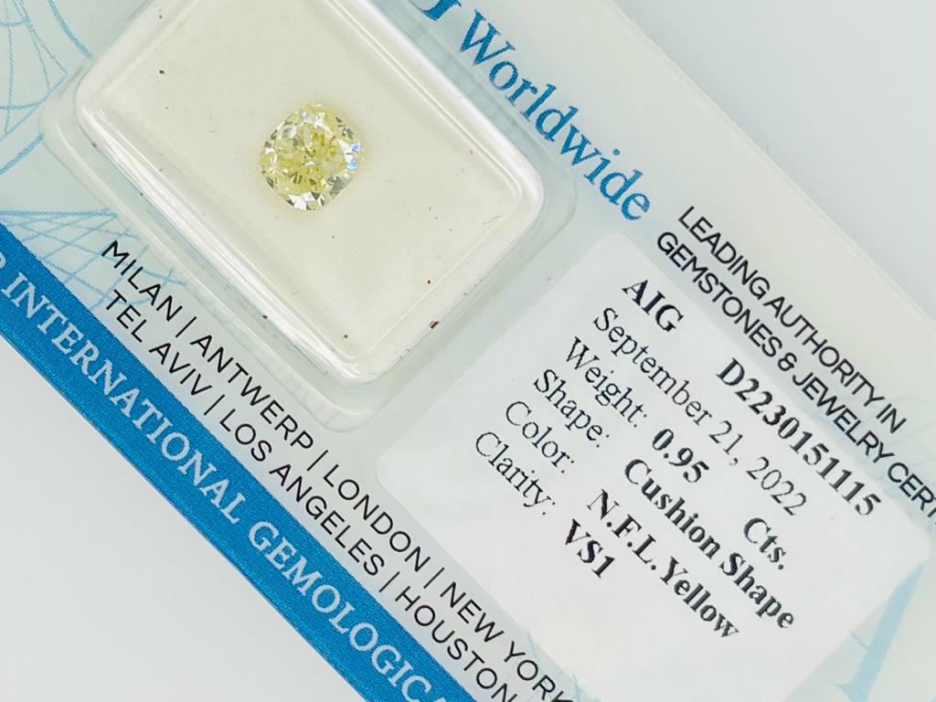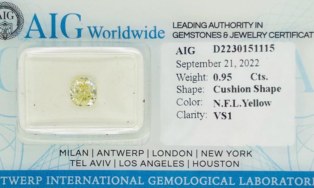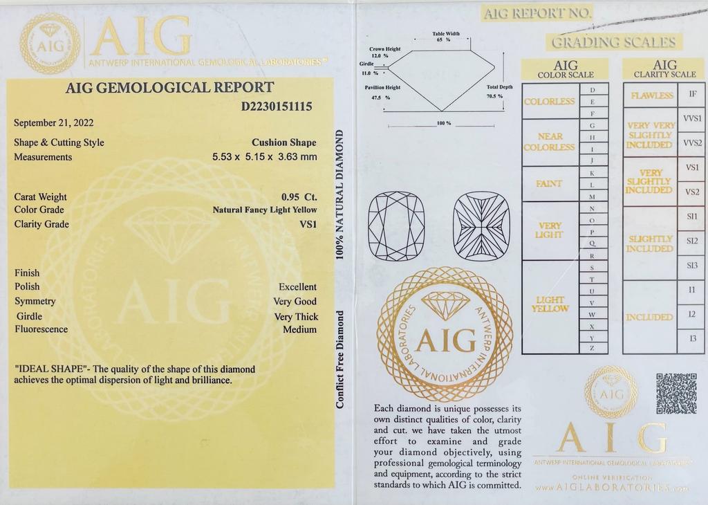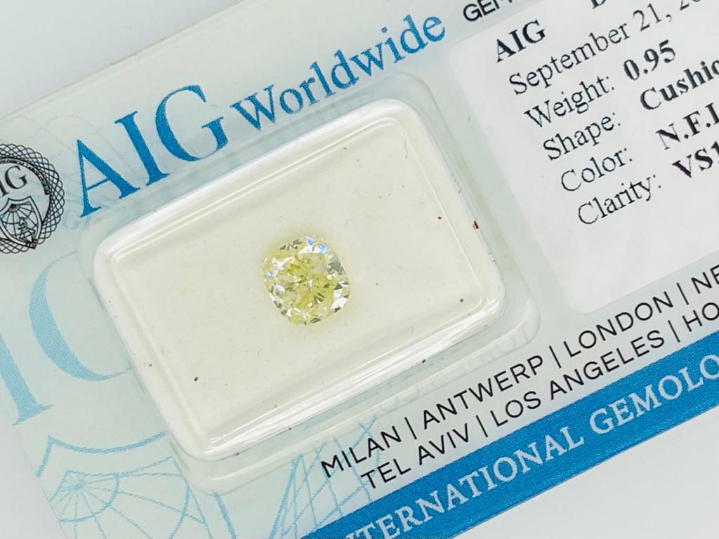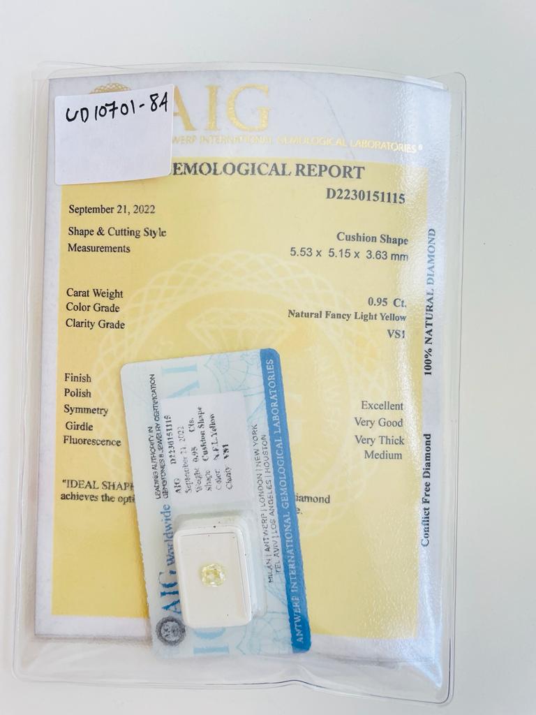 DIAMANTE 0,95 CARATI COLORE FANCY GIALLO CHIARO PUREZZA VS1 - TAGLIO CUSCINO - UD10701-8A