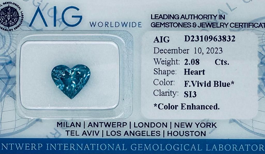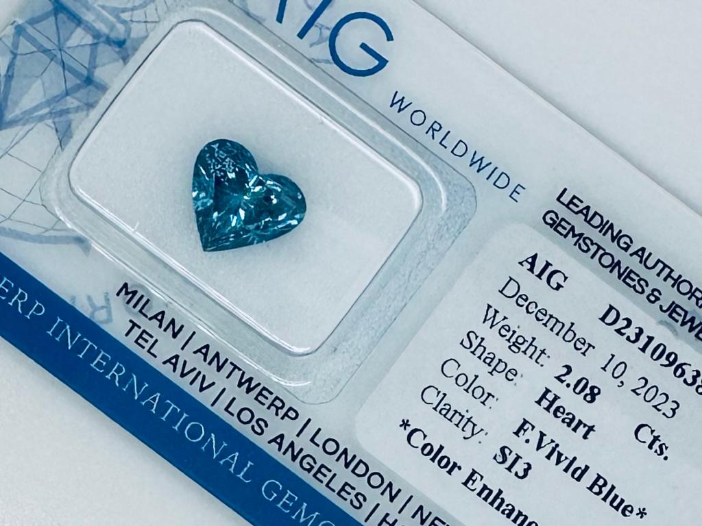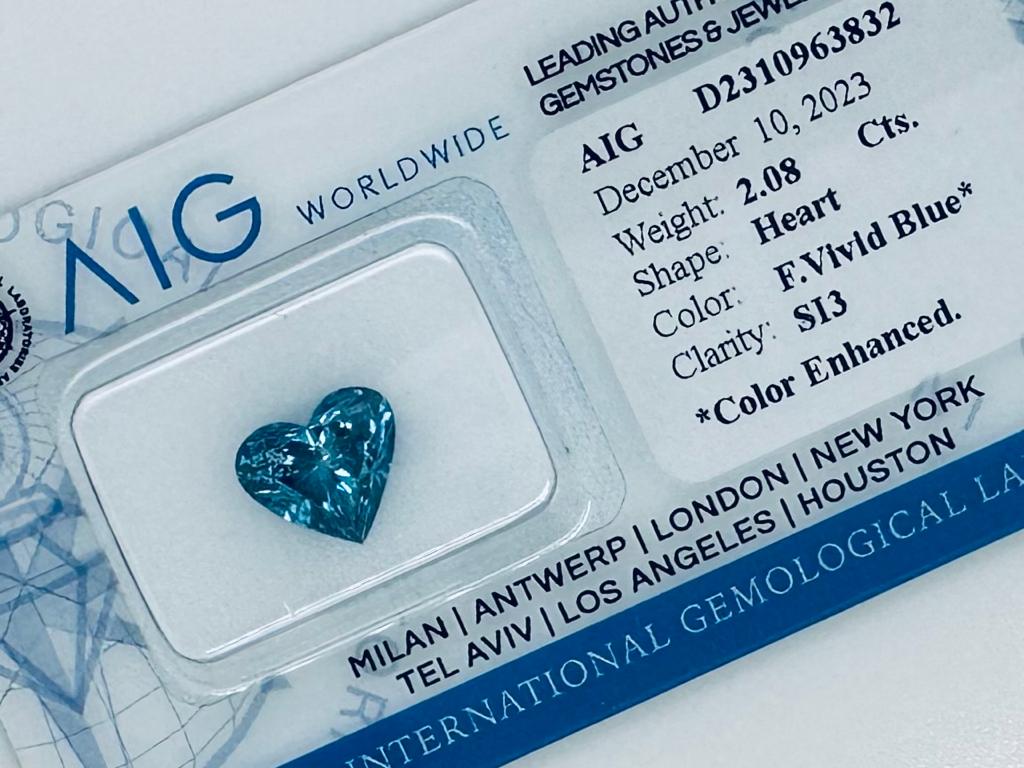 DIAMANTE COLORE ESALTATO 2,08 CARATI COLORE FANCY VIVID BLU* - PUREZZA SI3 - TAGLIO CUORE - CERTIFICATO AIG - C31202-5