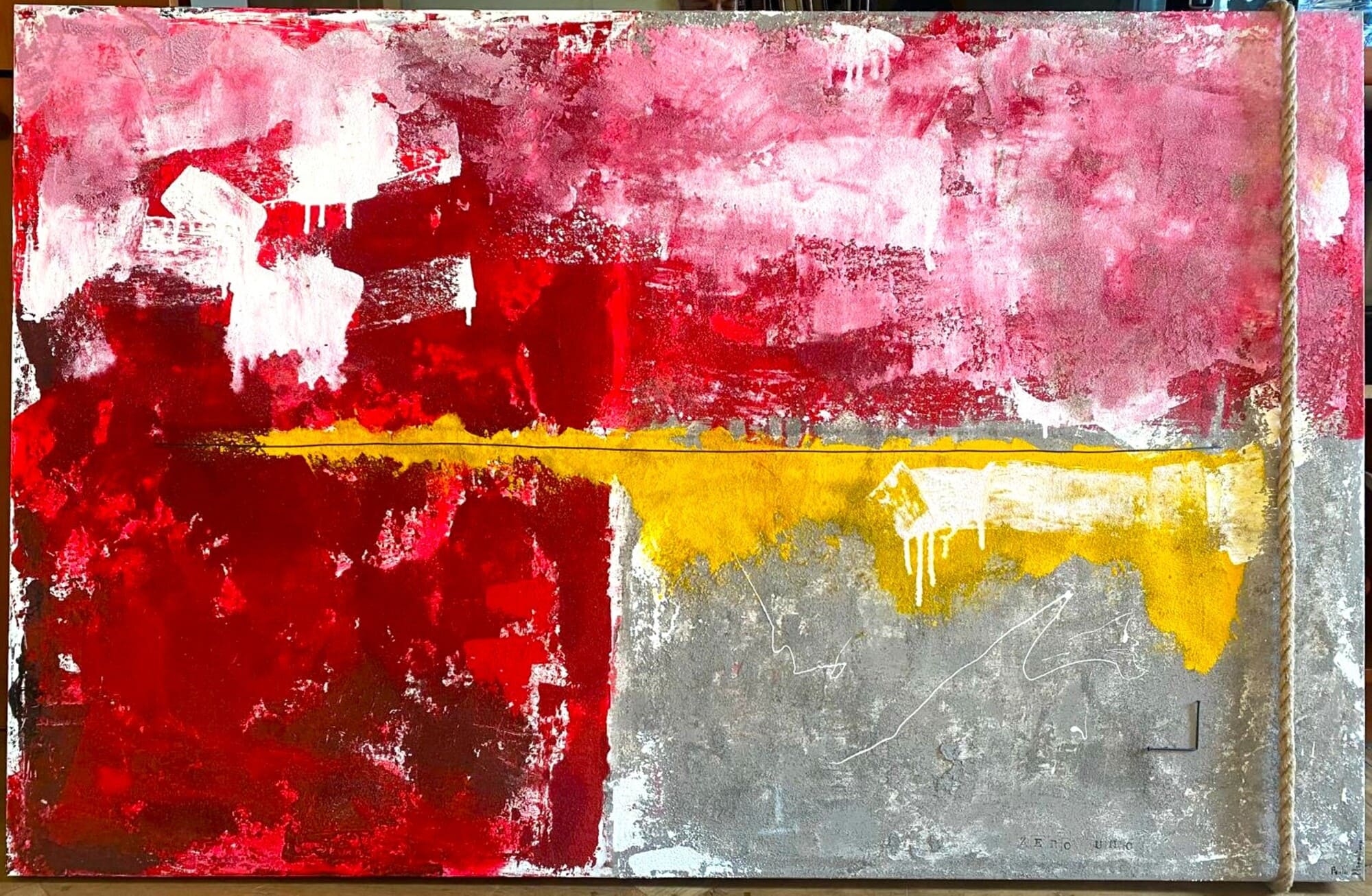 TECNICA: mista. Cavo metallico, corda, chiodi in ferro, sabbia, vinavil e smalti su tela
