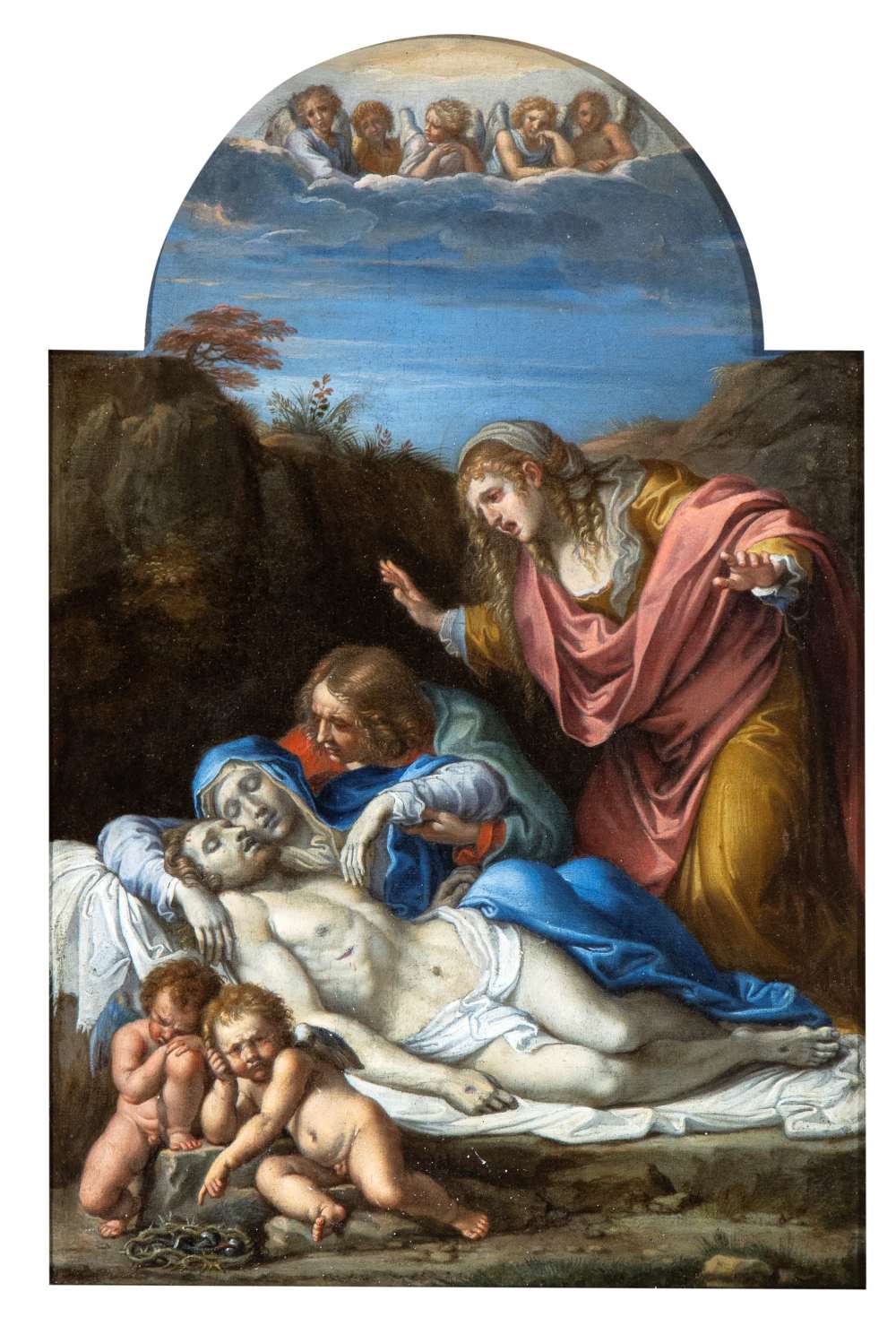 Lot 32 | Artista attivo a Roma, XVII secolo () Compianto sul Cristo morto Olio su tela...