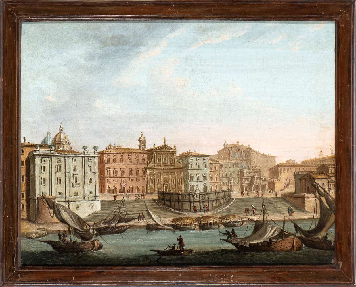 Artista attivo a Roma, XVIII secolo () Veduta del porto di Ripetta Olio su...