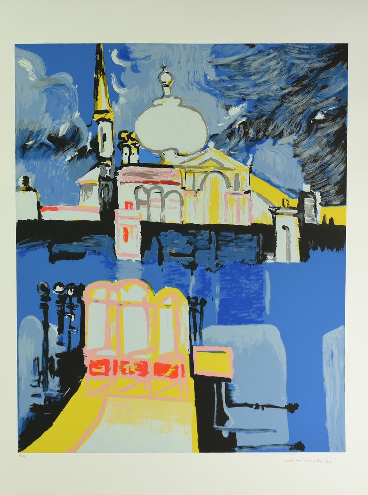Remo Brindisi VENEZIA, CHIESA DELLA SALUTE serigrafia su carta, cm 70x50; es....