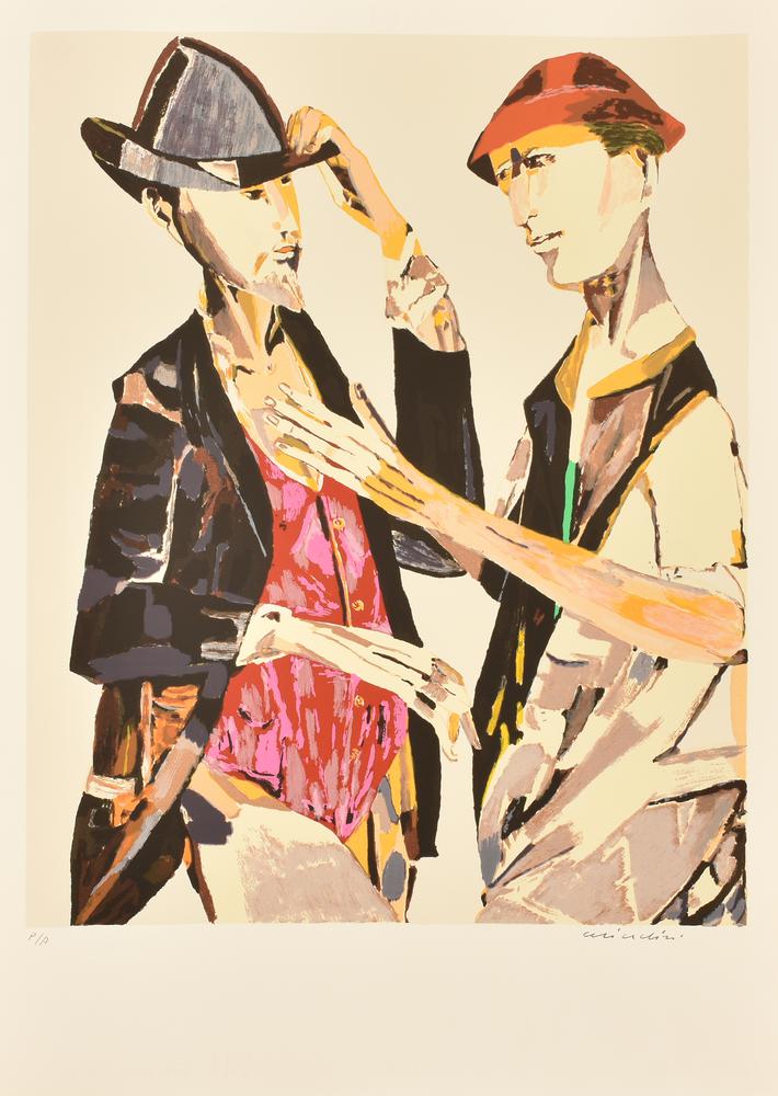 Lot 15 | Remo Brindisi DUE FIGURE litografia su carta Fabriano, cm 70x50; es. P.A. firma