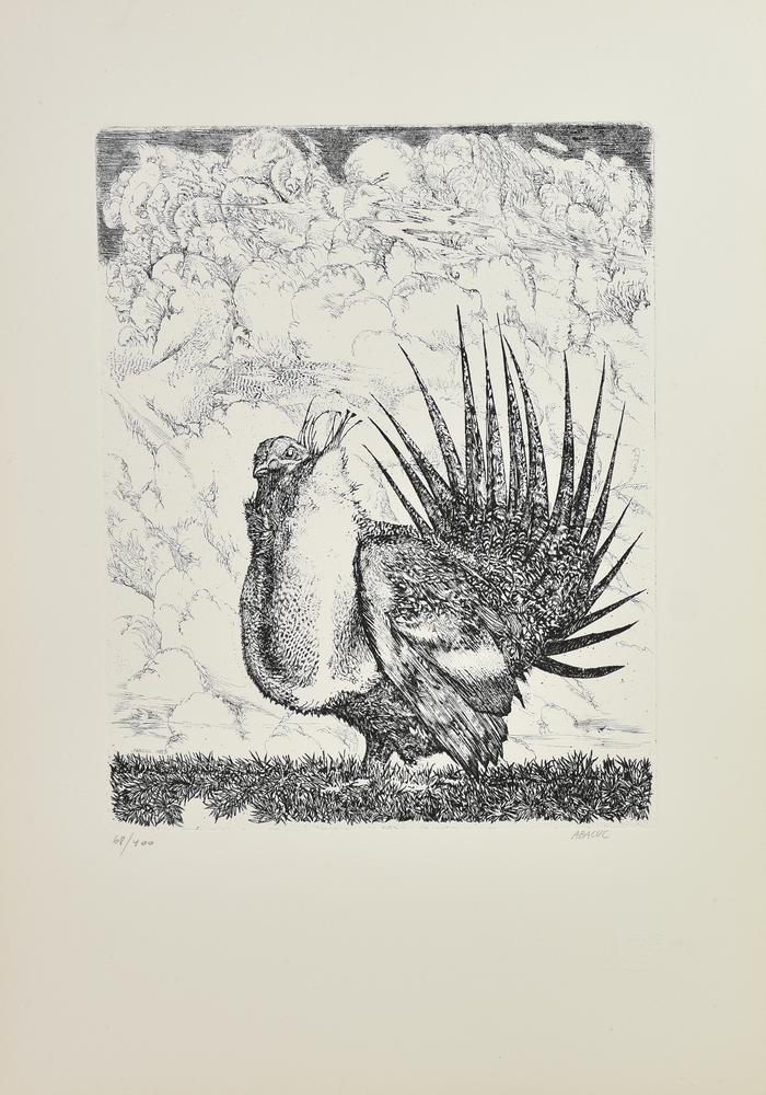 Abacuc VOLATILE, 1983 incisione su carta, cm 31x24,5, su foglio cm 50x35; es....