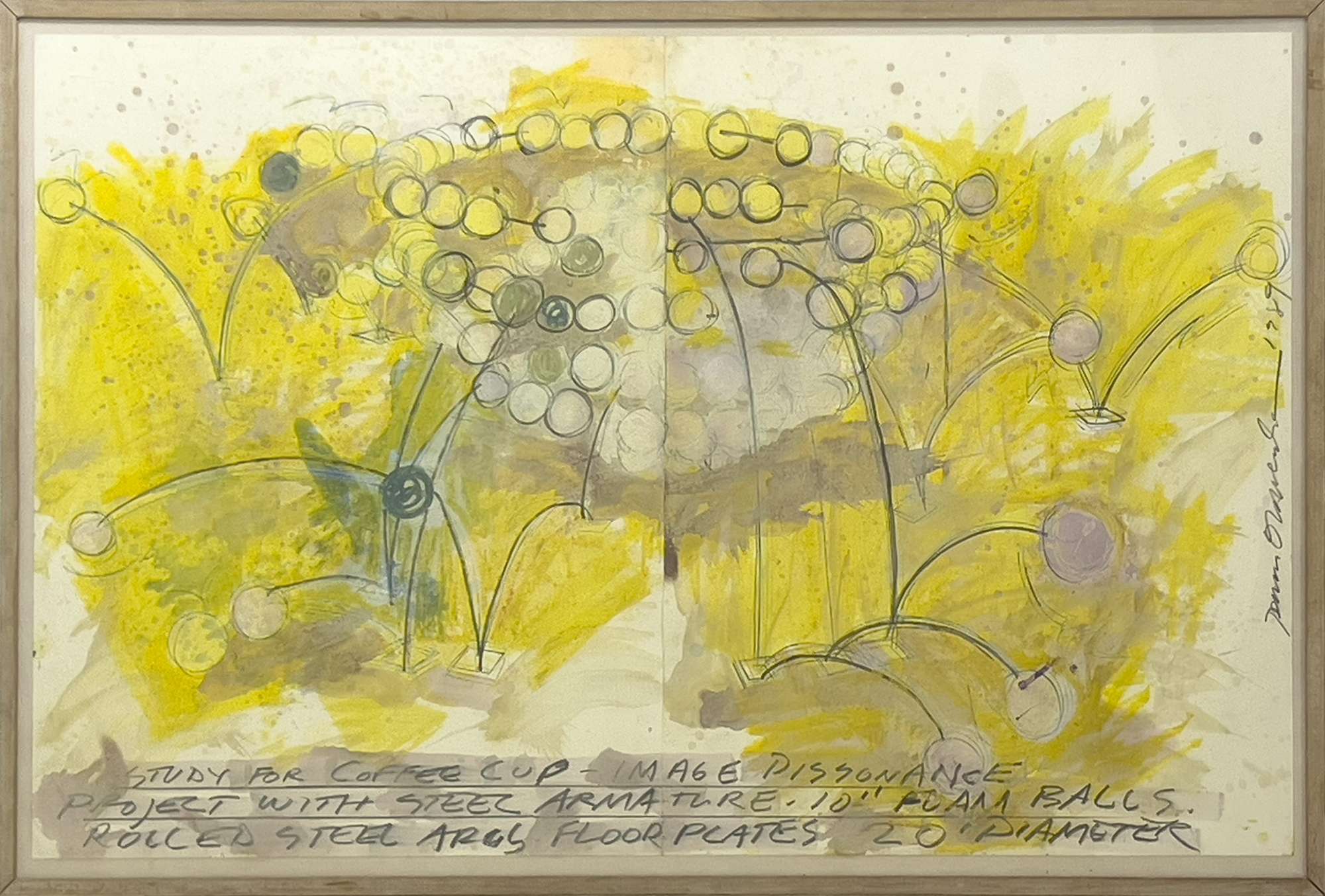 Dennis Oppenheim, Study for Coffee Cup, 1989, tecnica mista su carta, cm 126x193, firma, titolo e datazione al fronte