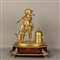 Carillon a forma di calamaio in bronzo dorato, con scultura raff....