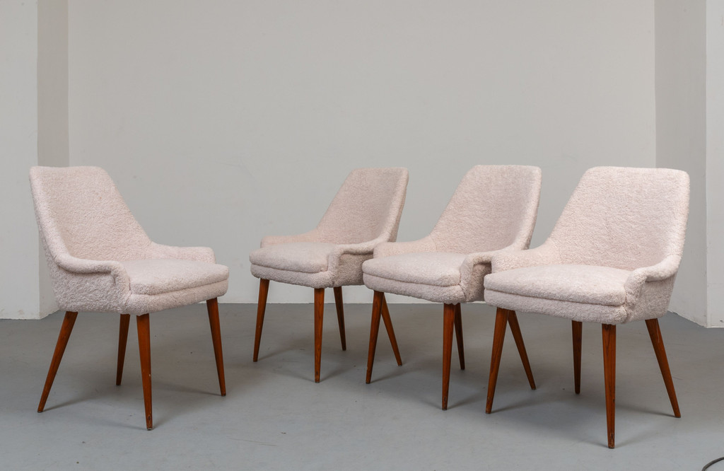 Legno di frassino imbottiture rivestito in tessuto bouclé.