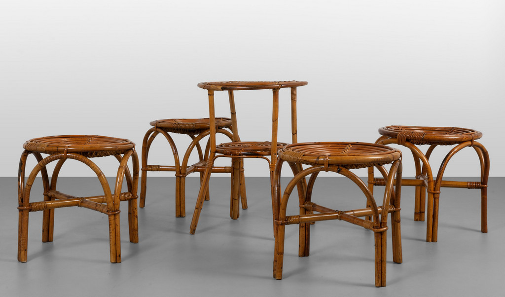 QUATTRO SGABELLI E UN TAVOLINO anni '60.
