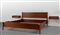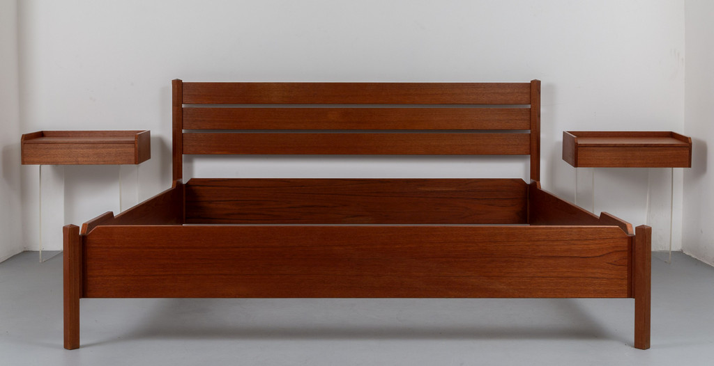 Un letto e due comodini pensili modello 'LT25'.