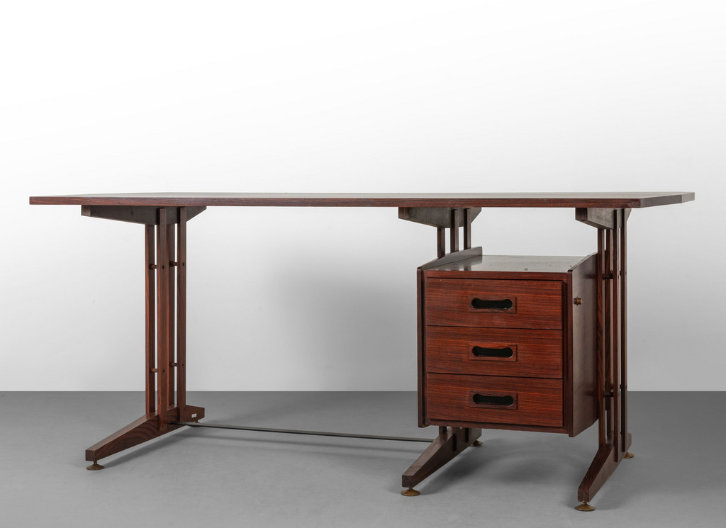 Legno di palissandro legno impiallacciato in palissandro metallo verniciato piedini in ottone.