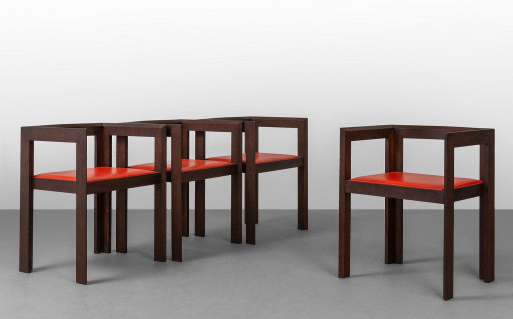 Legno di frassino tinto all'anilina sedili imbottiti rivestiti in vinilpelle.