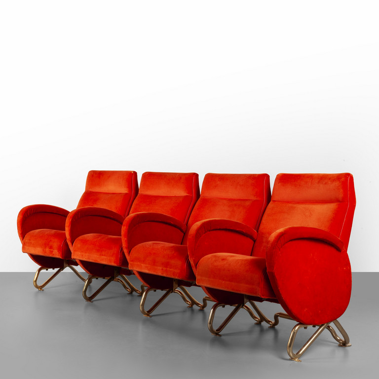 Una linea di quattro poltrone per l'AUDITORIUM RAI Torino.