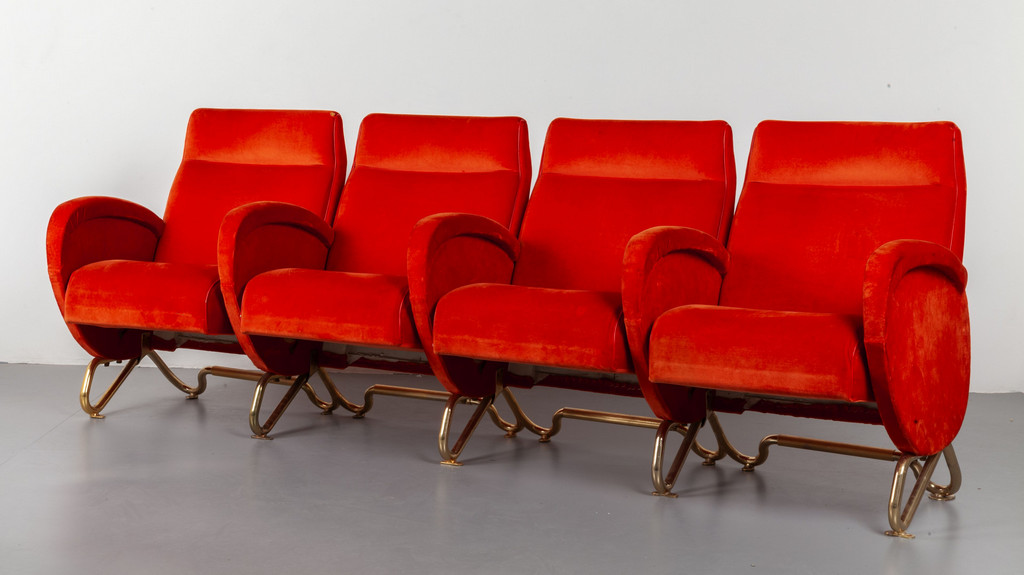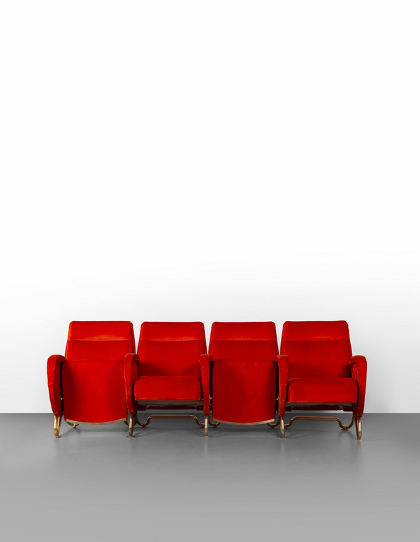 A line of four folding seats from the RAI AUDITORIUM Turin.
