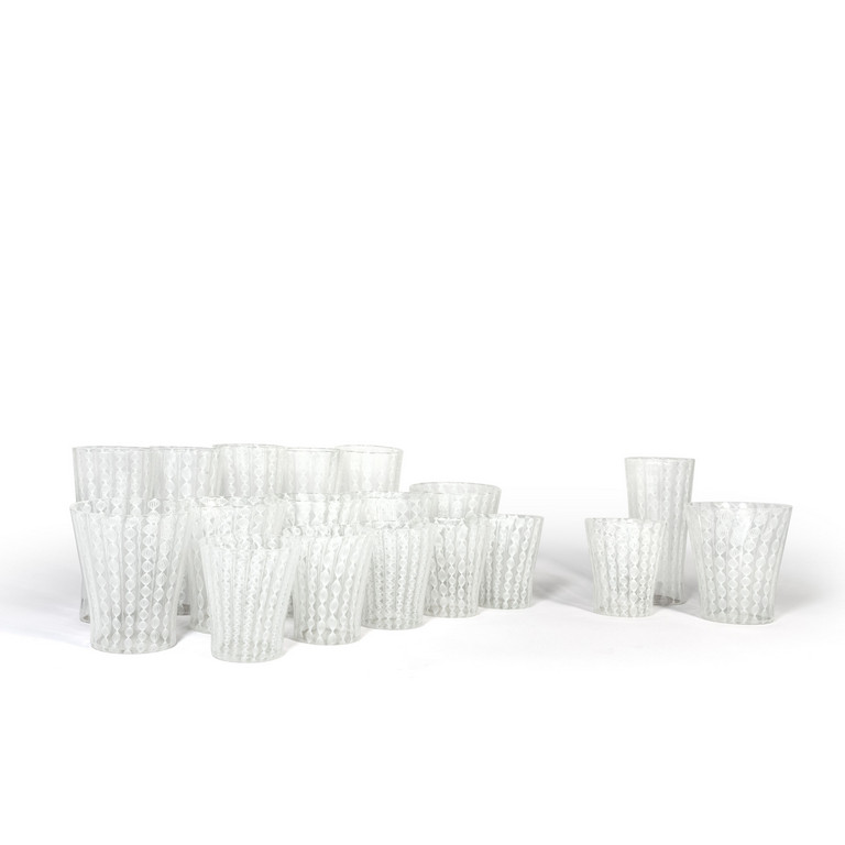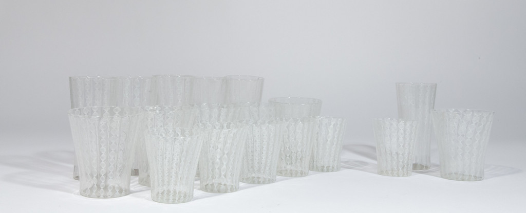 Un servizio di 18 bicchieri a canne di zanfirico lattimo a sette fili.
