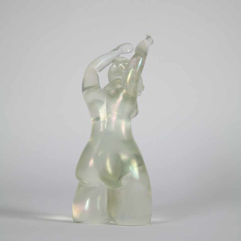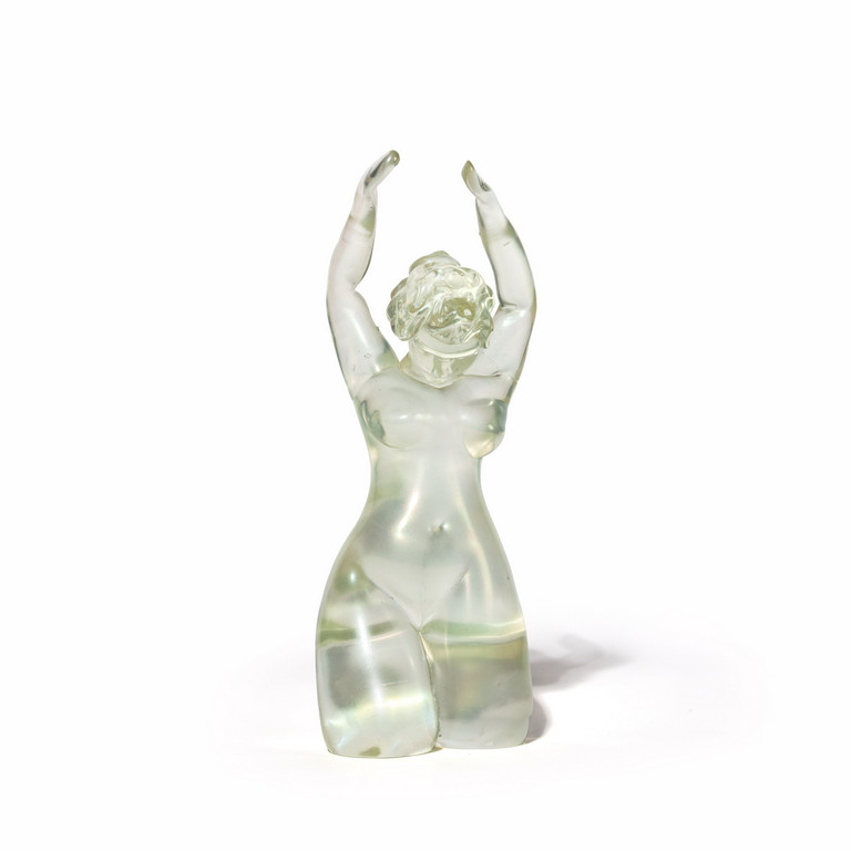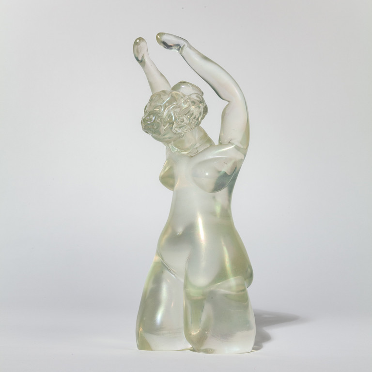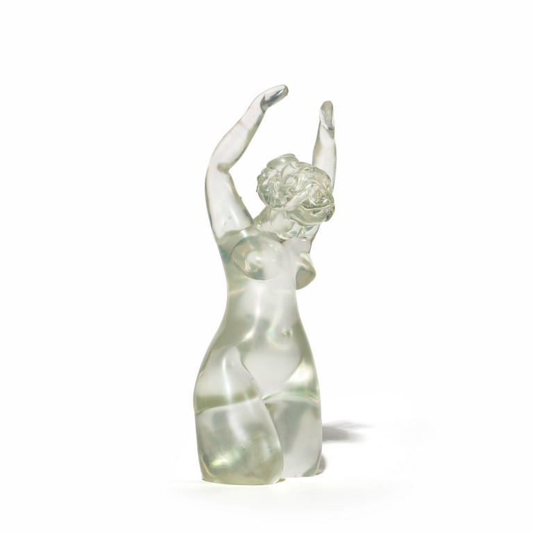 Una figura di donna in cristallo iridato modello senza anfora. Etichetta originale blu.