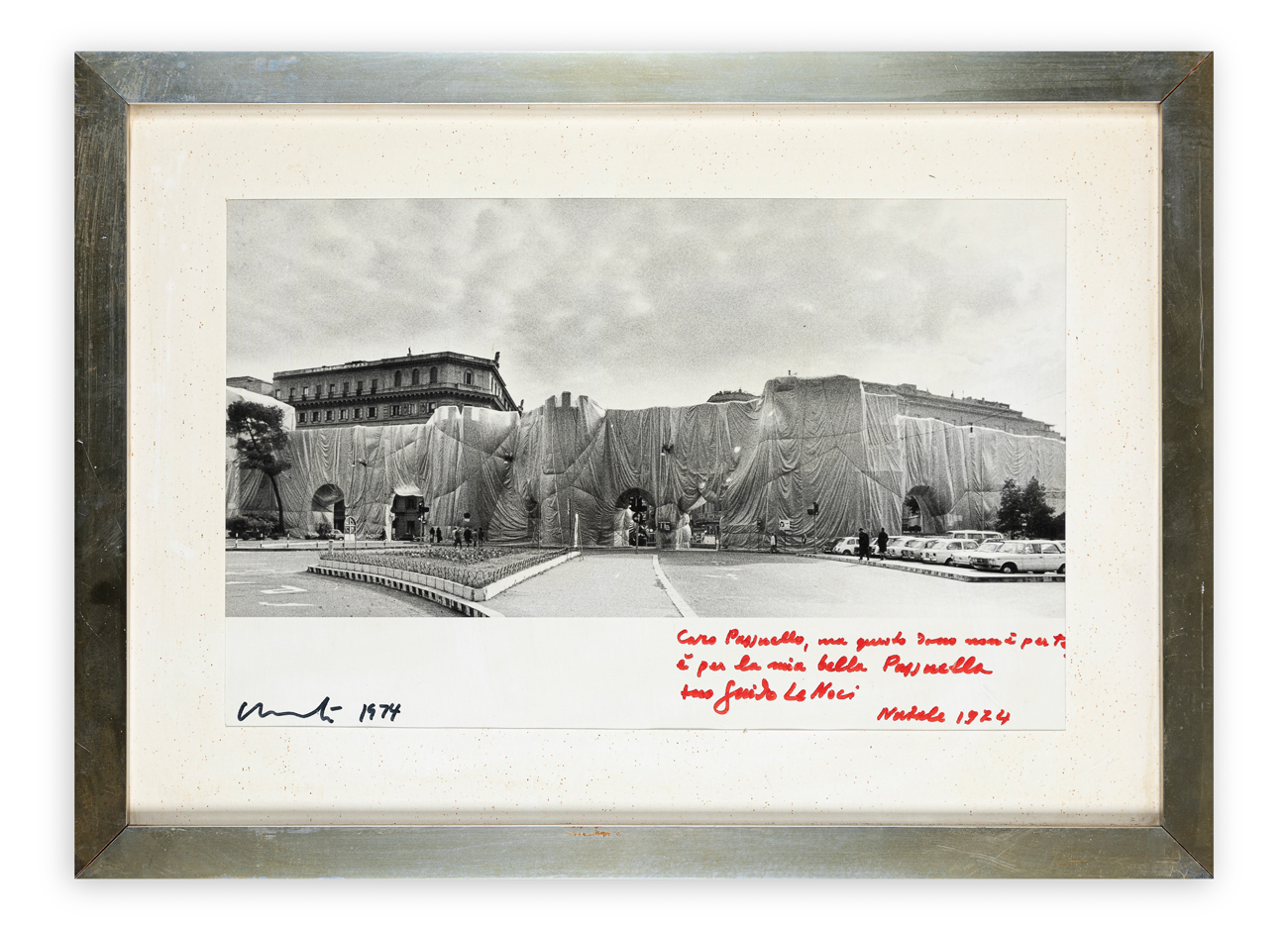 Firma del gallerista Guido Le Noci e dedica ad personam datata Natale 1974 al fronte