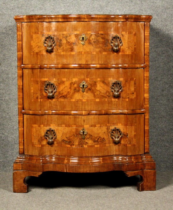 Lot 521 | Comdino lastronato in legno e radica di noce, filettato in legni chiari,...
